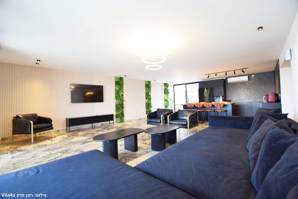 סלון עם מערכת ישיבה, טלוויזיה ומיזוג אוויר