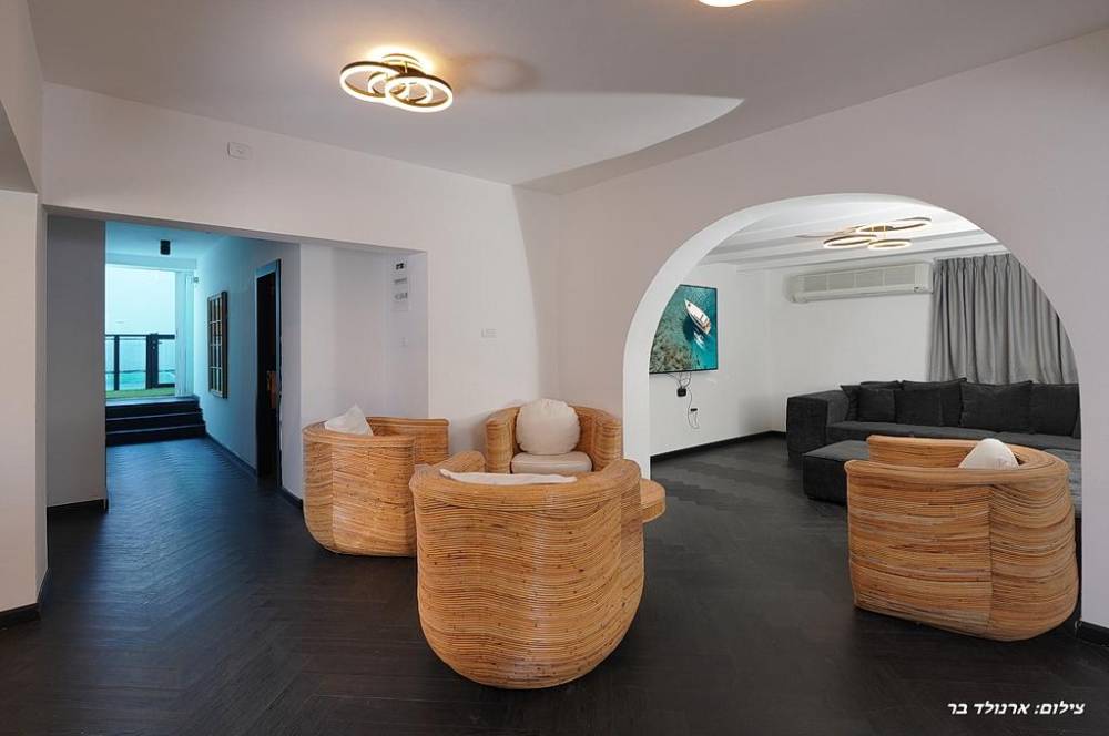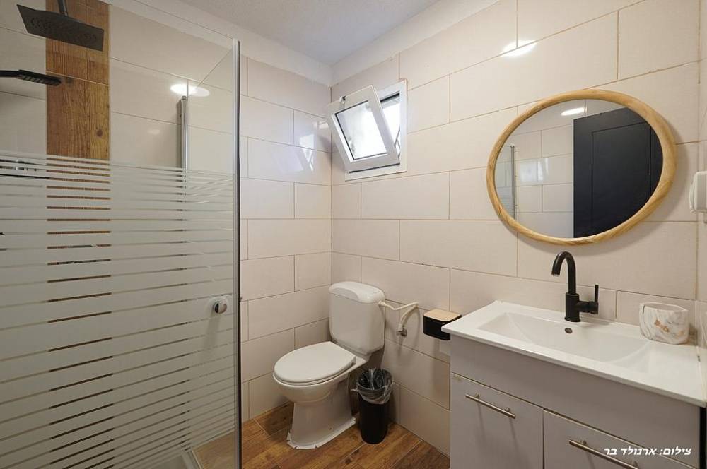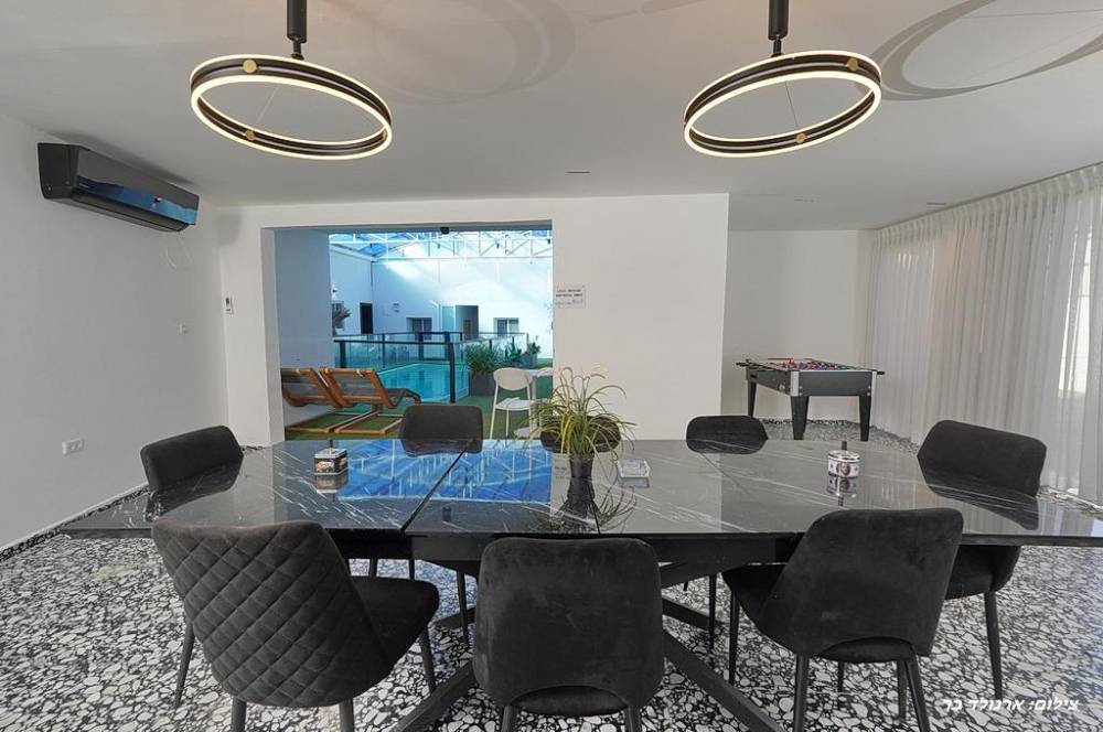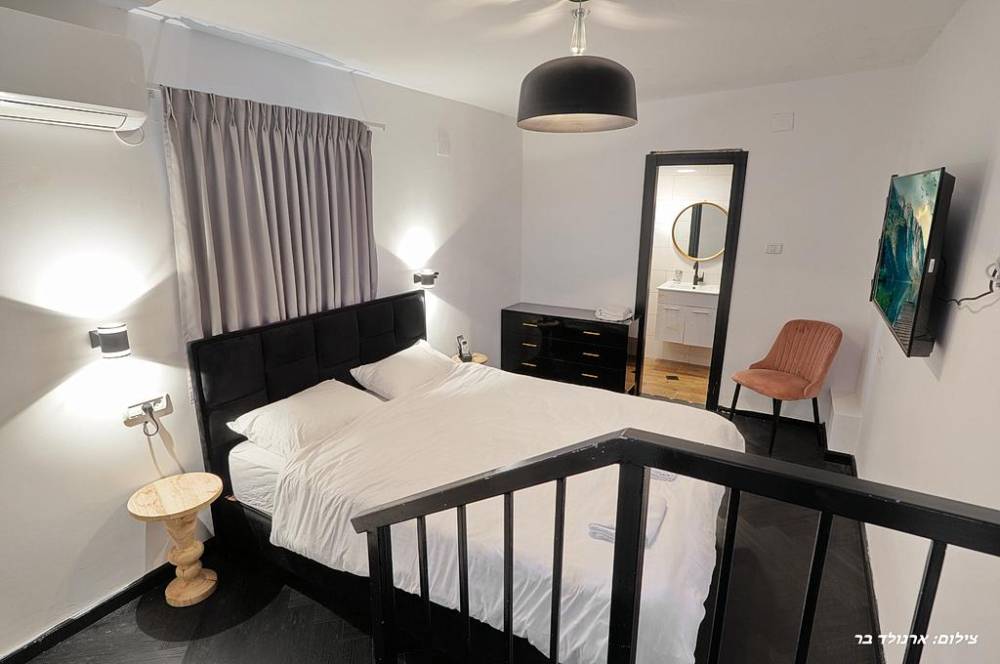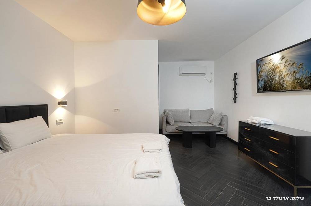 - 9 חדרי שינה הכוללים: מיטה זוגית יהודית, מיזוג אוויר, מסך LCD, שידות אחסון, חדר רחצה פרטי