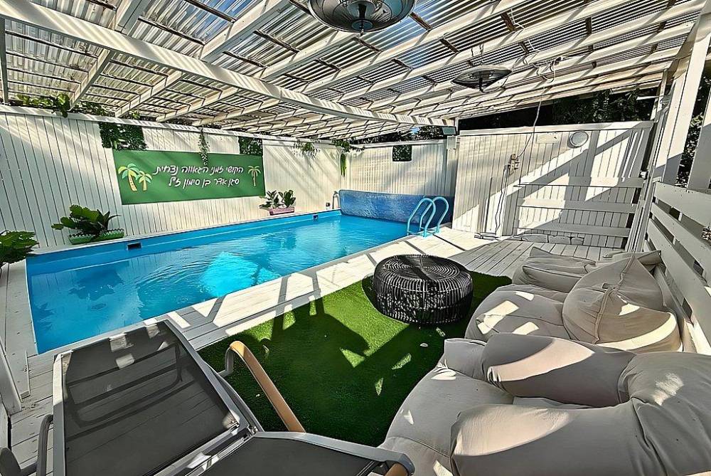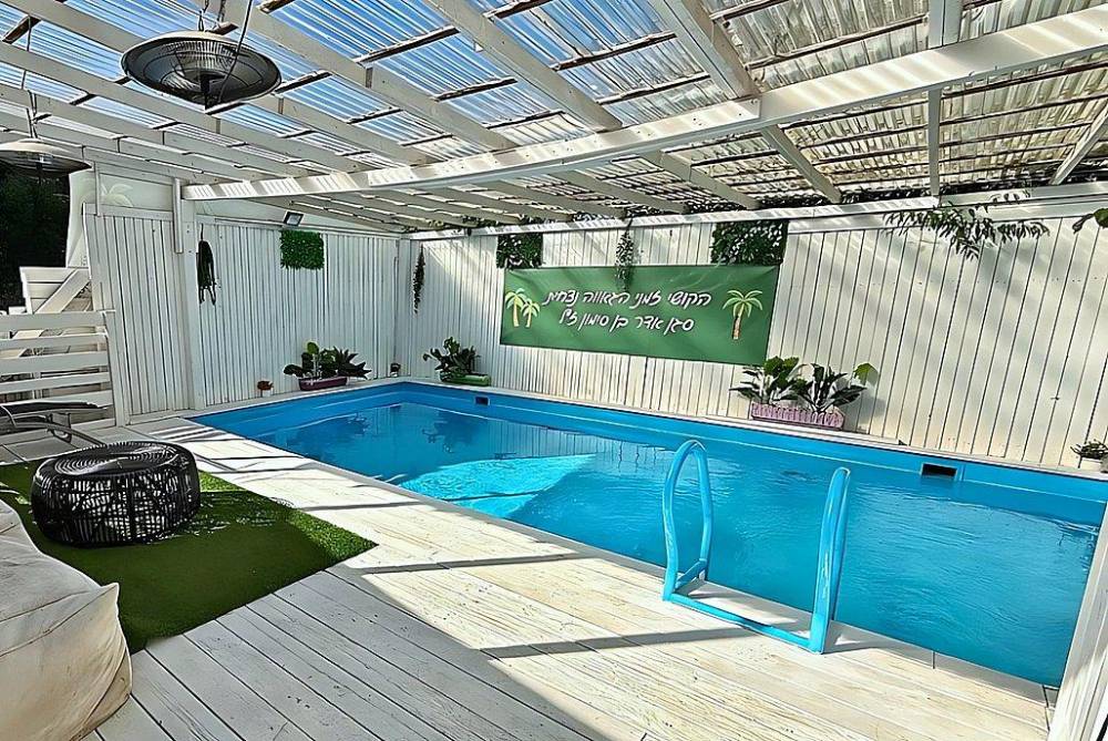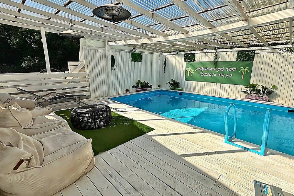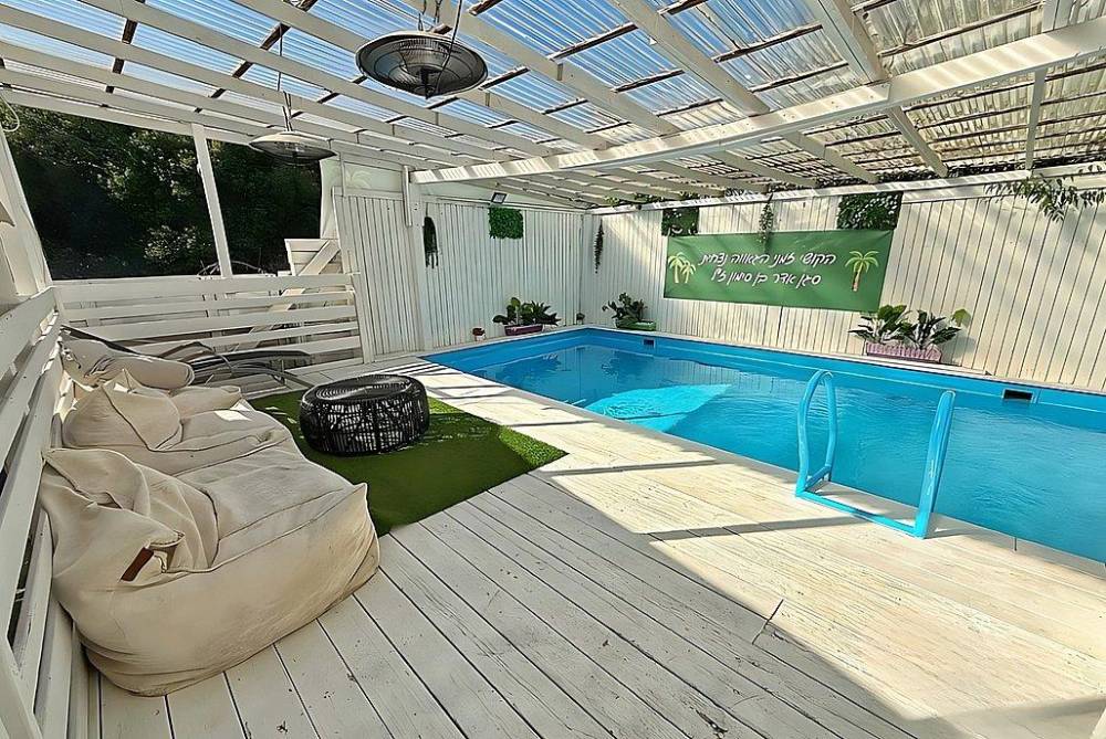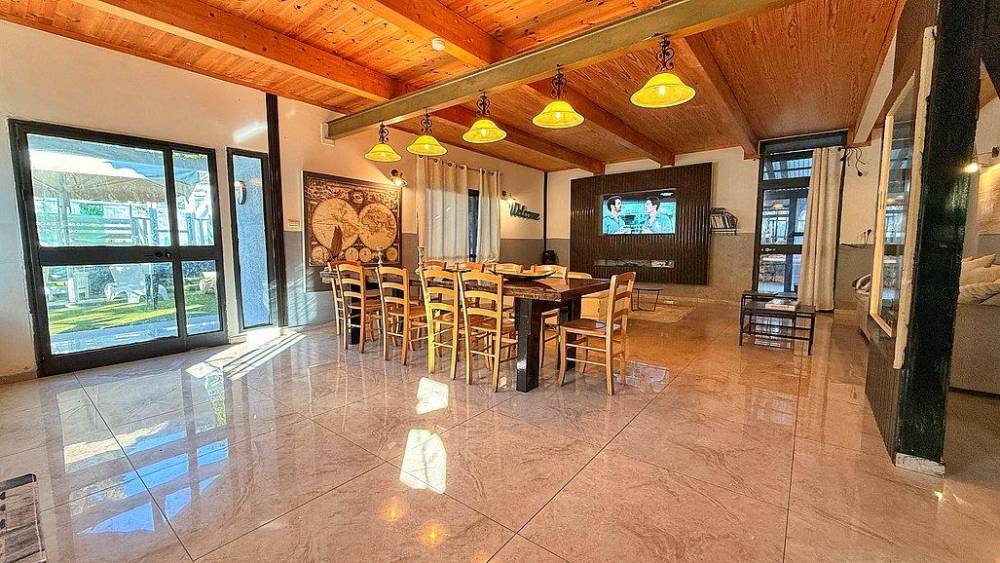 בריכת שחייה מחוממת ומקורה בחורף, חדר אוכל משותף, שולחנות משחק: סנוקר ופינג פונג, טרמפולינה ופינת מנגל