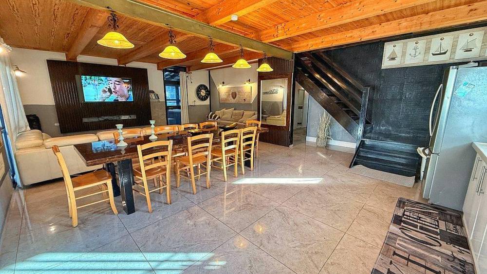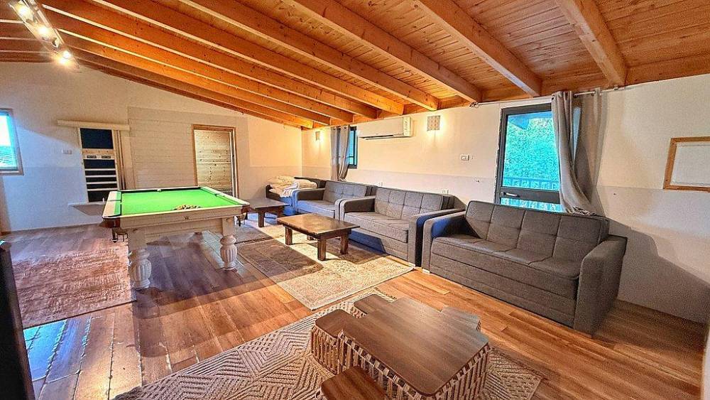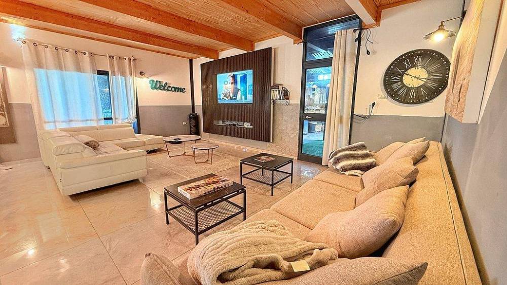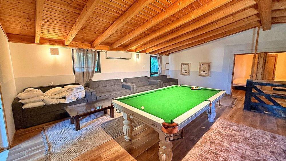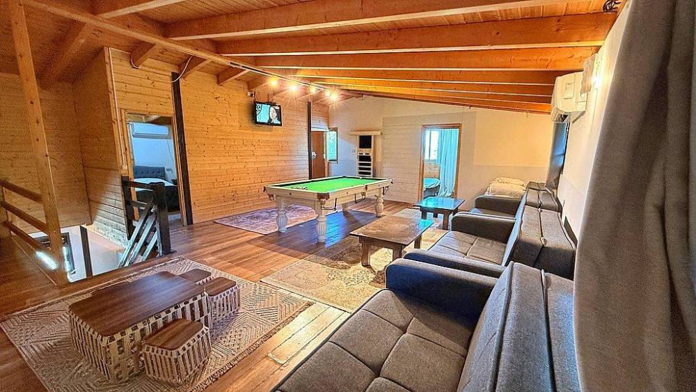 •מתחם פנאי הכולל: שולחן סנוקר, 4 ספות הנפתחות למיטות זוגיות וטלוויזיה חכמה בחיבור ערוצים, נטפליקס ויוטיוב