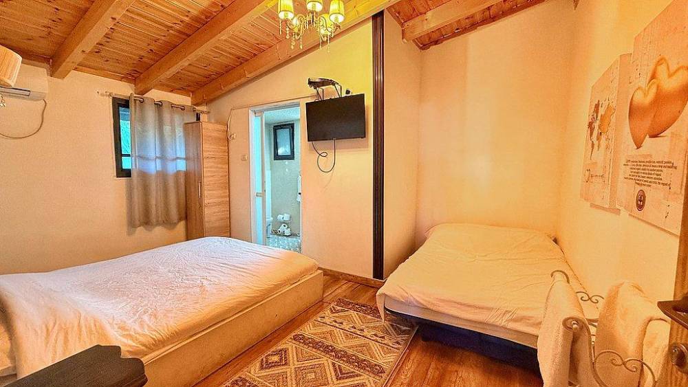 אבזור החדרים: מיטה זוגית, טלוויזיה חכמה בחיבור ערוצים, נטפליקס, יוטיוב וחדר רחצה פרטי עם מקלחת ושירותים