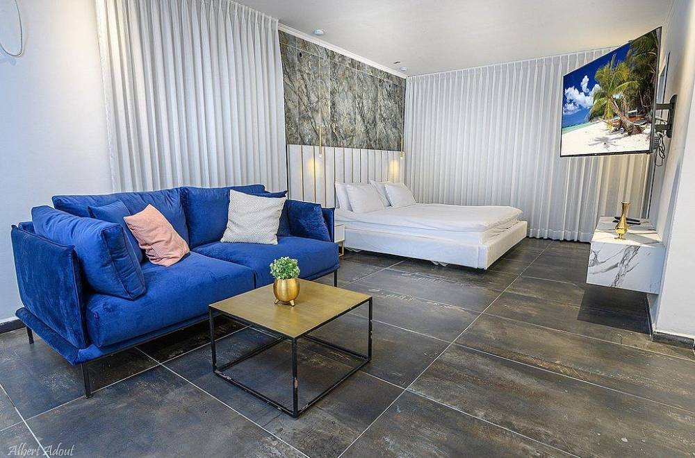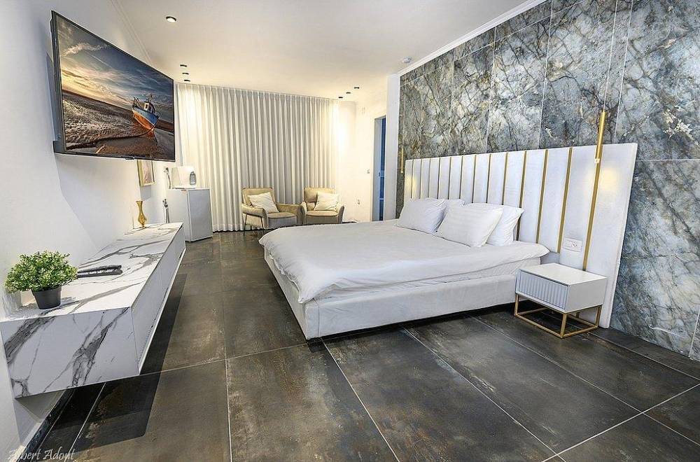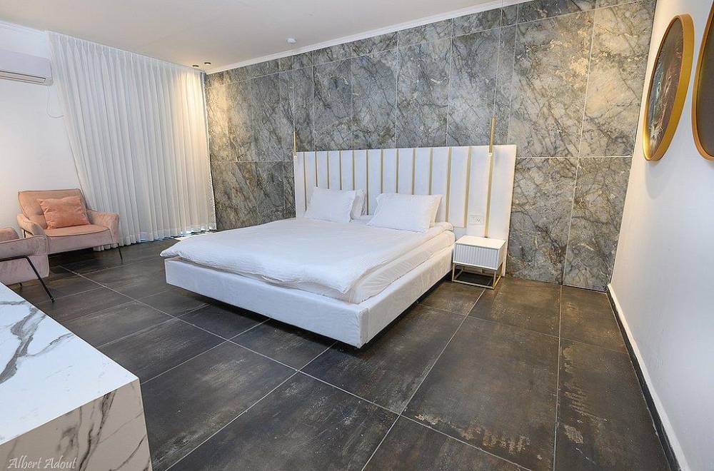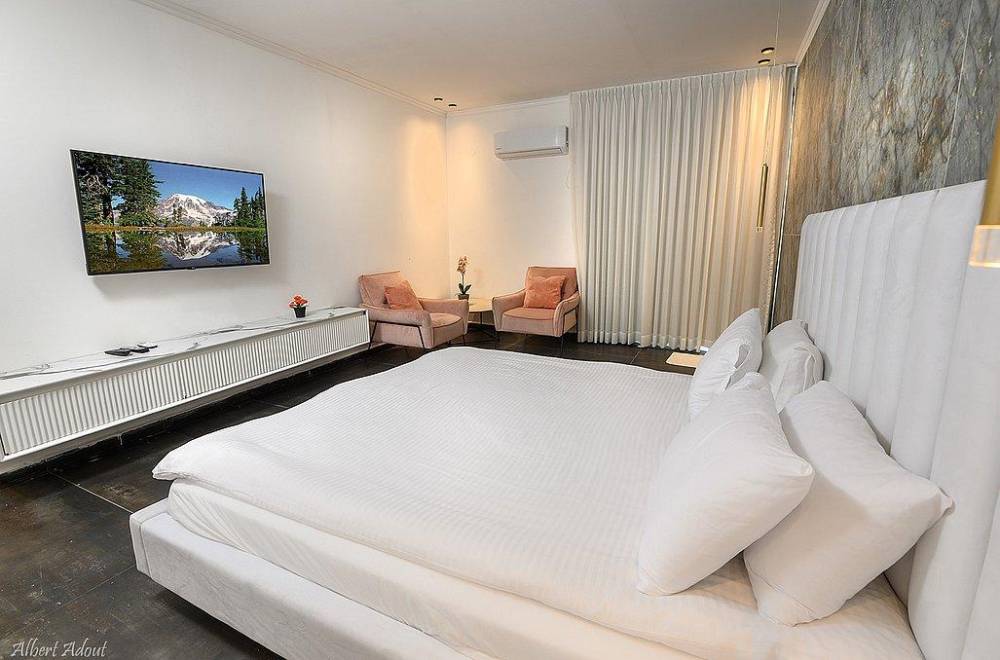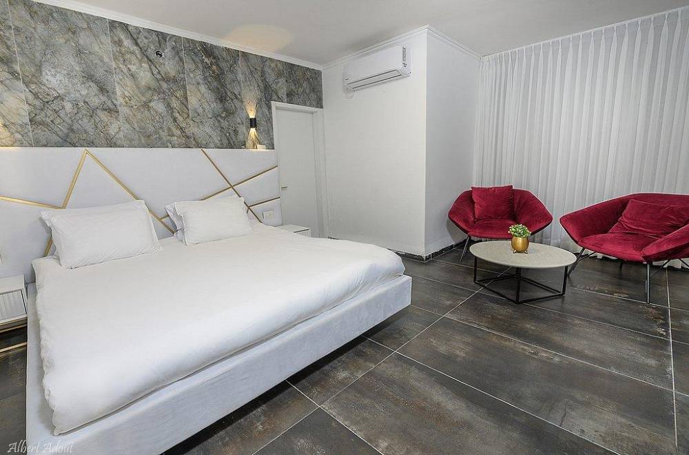 מיטה זוגית מוצעת, שידה, מיזוג אוויר, שידה או ארונית, פינות ישיבה
