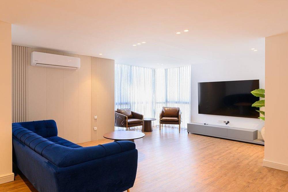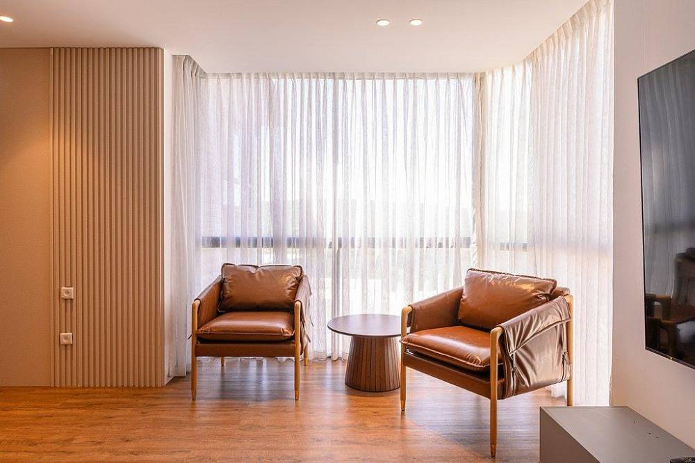 סלון מעוצב אל מול מסך LCD בגודל 70 אינץ', חיבור ל-Yes