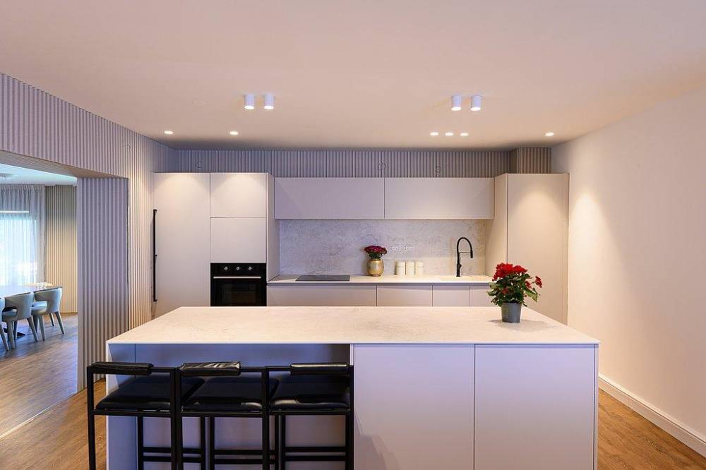 מטבח מאובזר הכולל: מקרר, מיקרוגל, כיריים אינדוקציה, מדיח, מכונת קרח, מכונת קפה, תמי 4, כלי אוכל והגשה