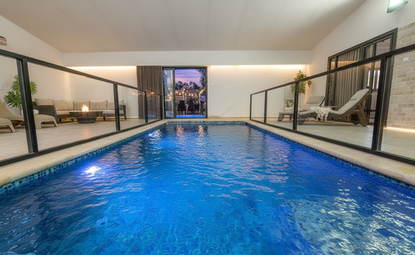 בריכת שחייה בתוך הוילה, מגודרת מחוממת מקורה