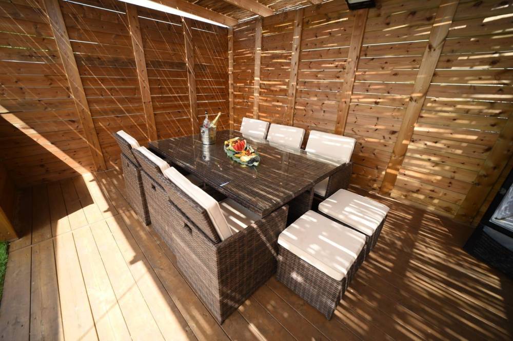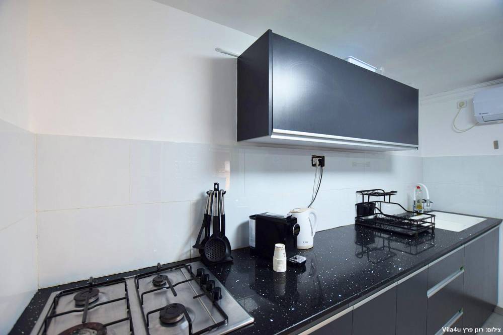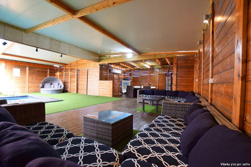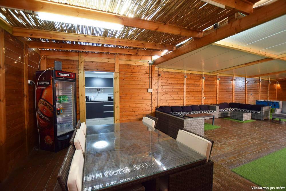 מטבח חיצוני מאובזר הכולל : 2 מקררים, מקפיא, תנור אפייה, כיריים גז לבישול