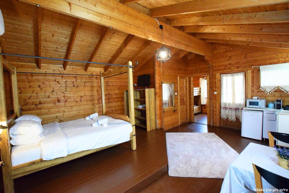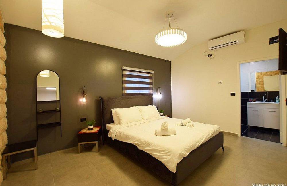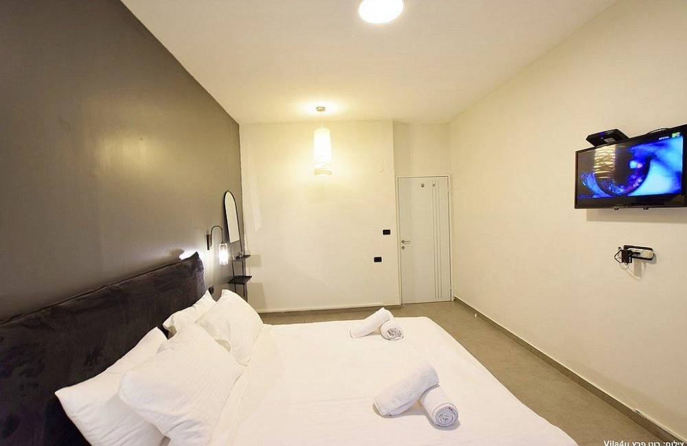 5 חדרי שינה המאובזרים: מיטה זוגית, שידה, מיזוג אוויר ומסך צפייה גדולה מסך 32 אינץ