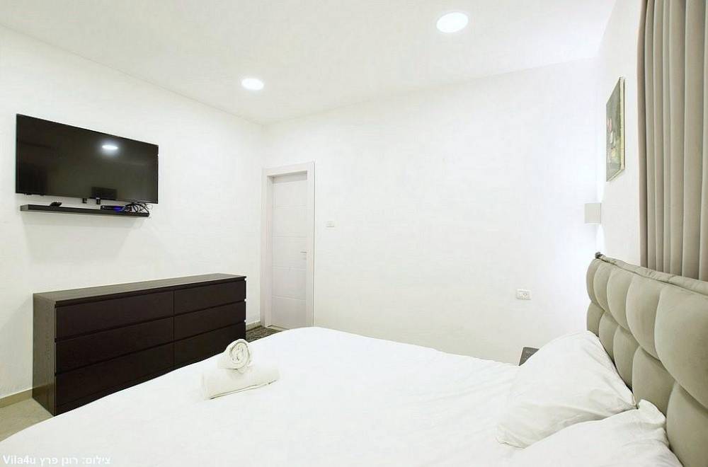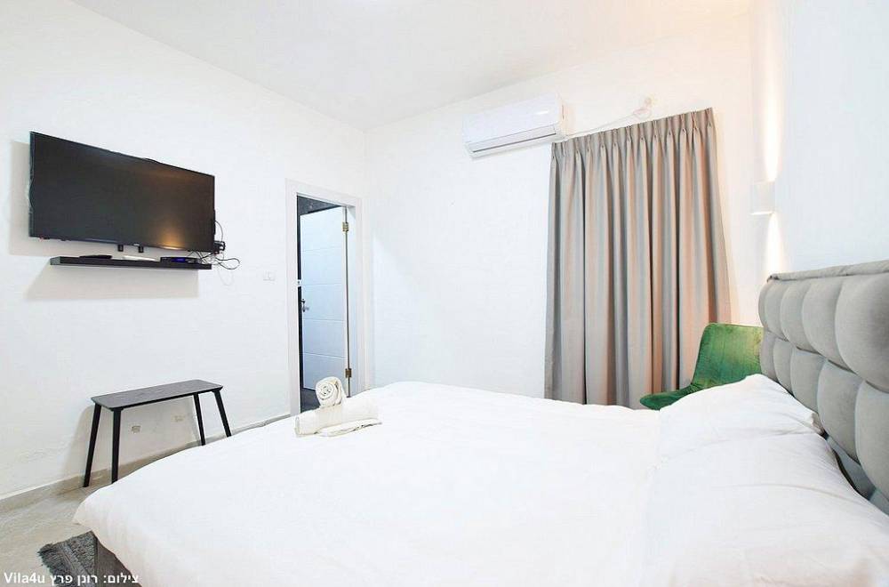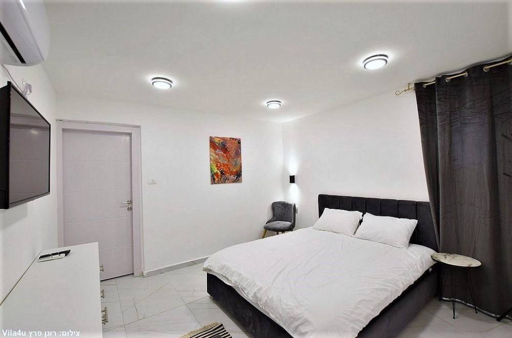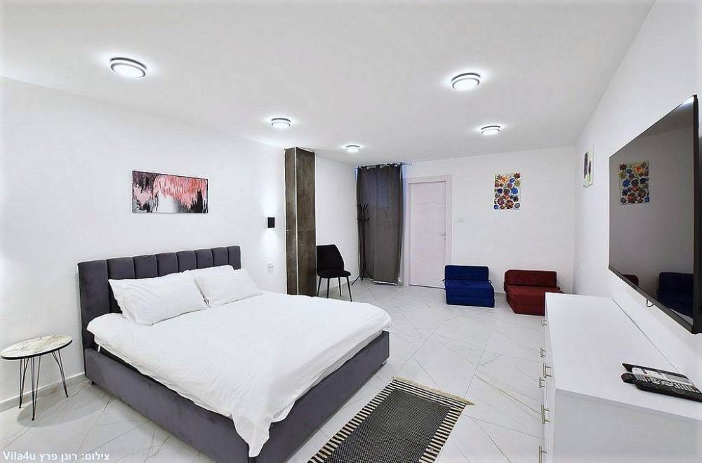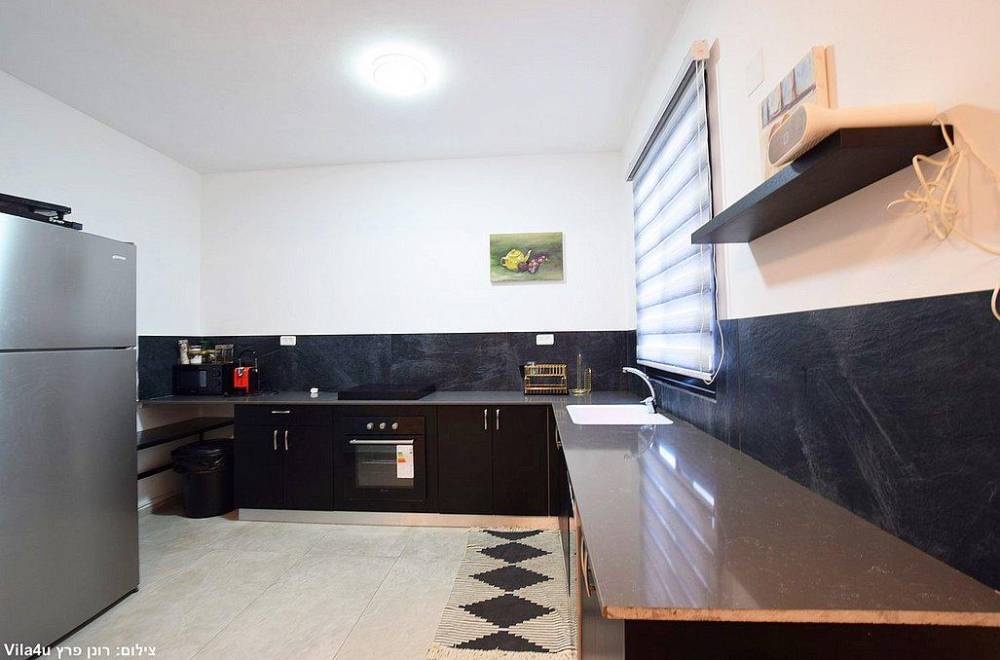 מטבח מאובזר הכולל: מקרר, מיקרוגל, תנור, תמי 4, כיריים לבישול, קומקום חשמלי