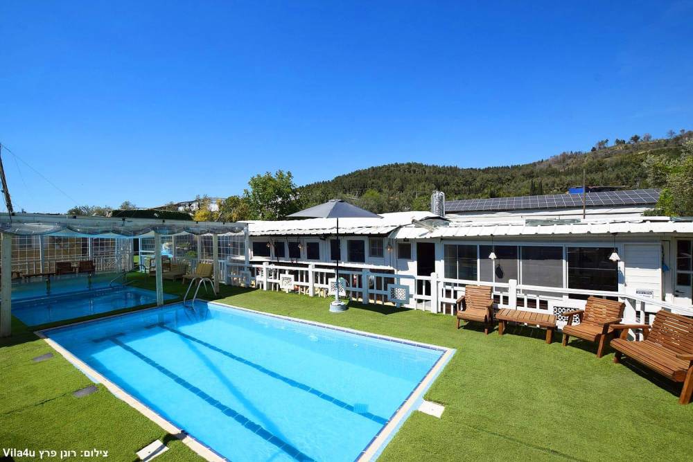 בריכה במתחם מחוממת ומקורה לצד בריכת הילדים