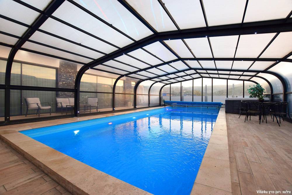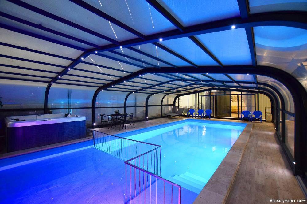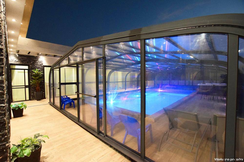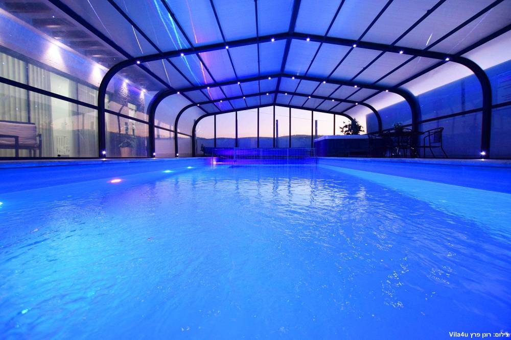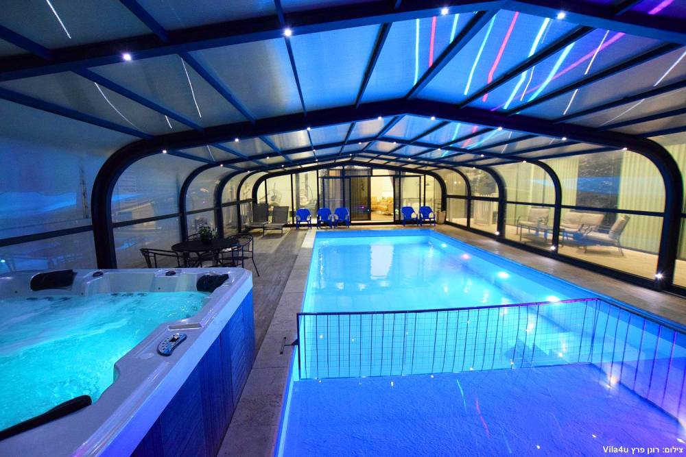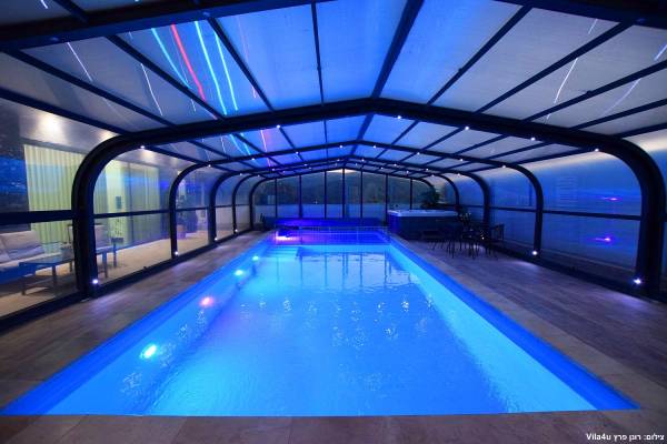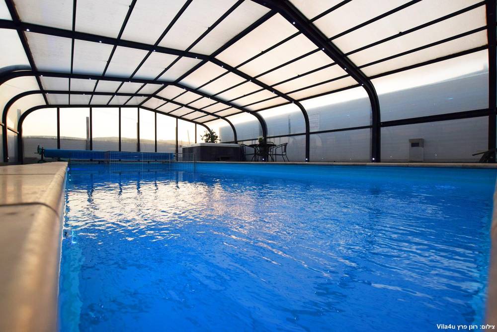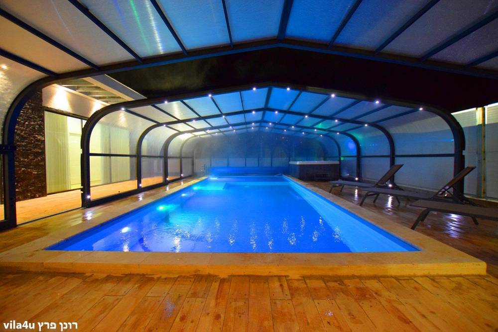 - בריכת שחייה ענקית מוארת מחוממת מקורה בגודל 13X5, בשילוב בריכת פעוטות - בקיץ הקירוי נפתח