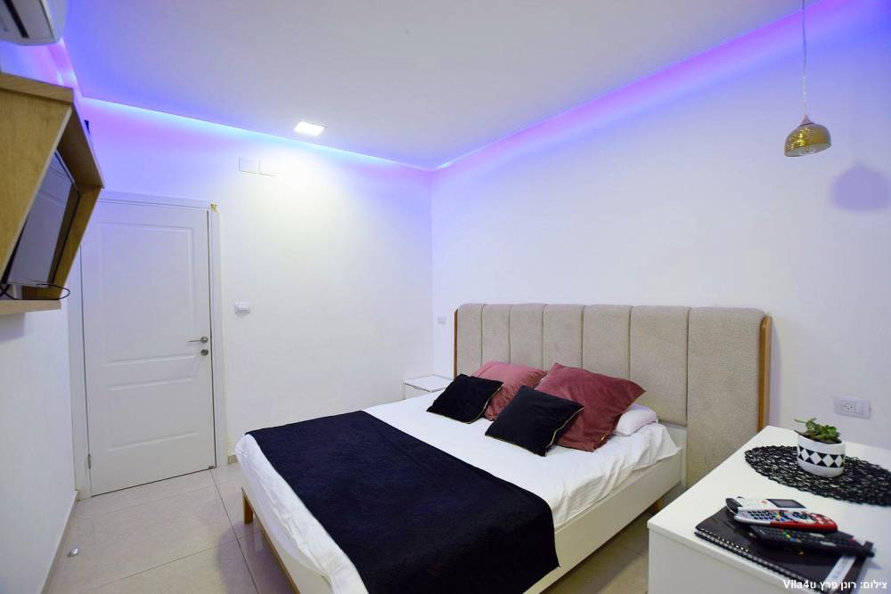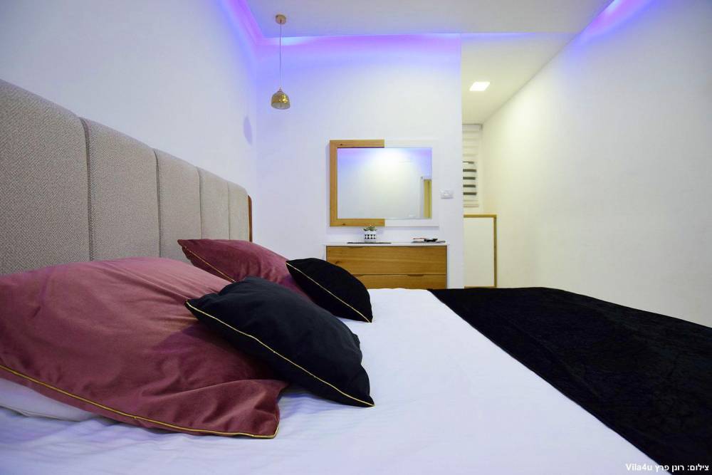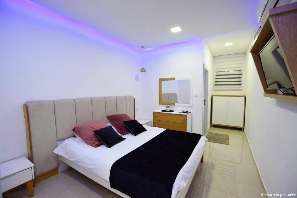 אבזור החדרים: 5 חדרי שינה עם מיטה זוגית, שידות, ארונית אחסון, טלוויזיה, מיזוג אוויר