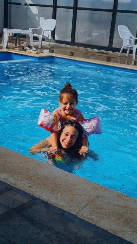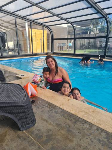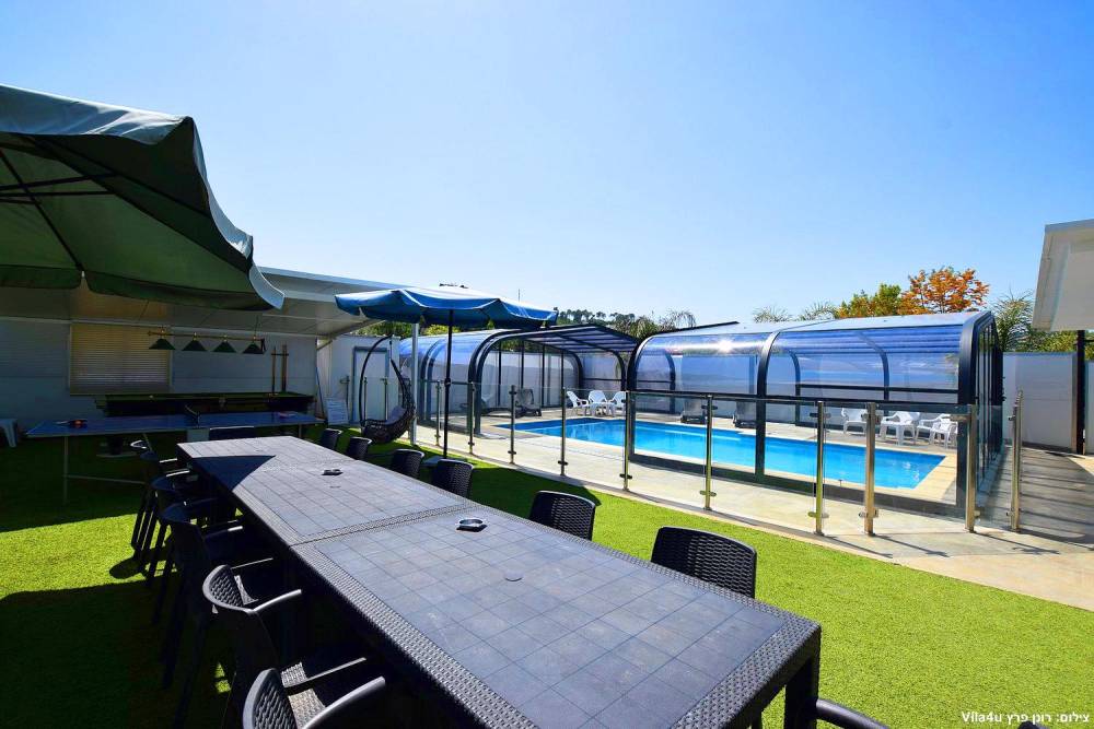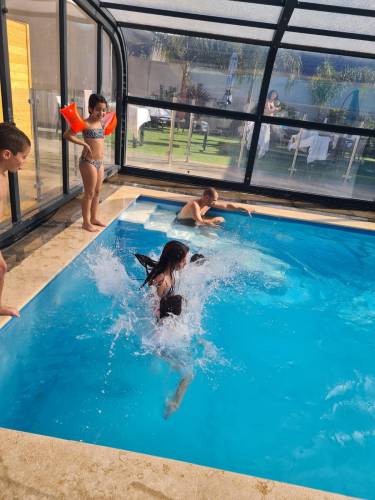בריכה מחוממת ומקורה עם זרמי מים, גודל הבריכה 9/4.5 מ' עומק 1.40 מ'