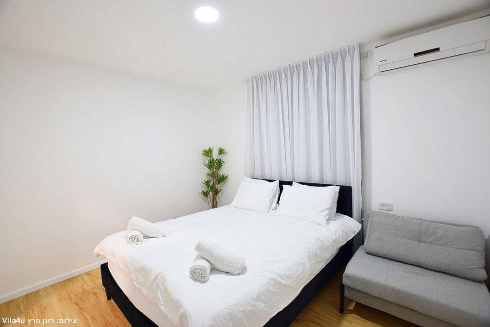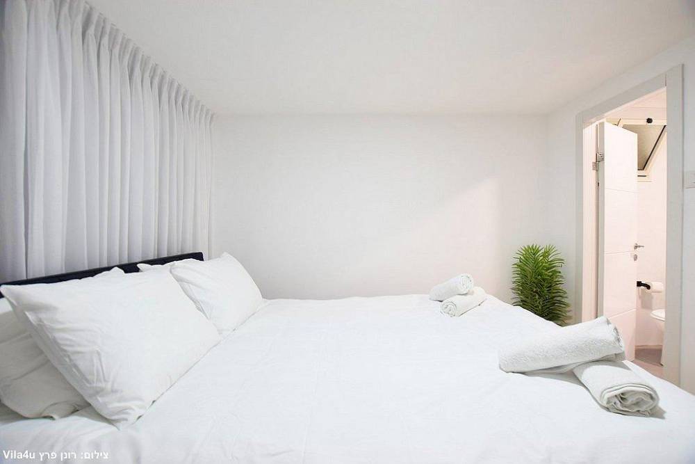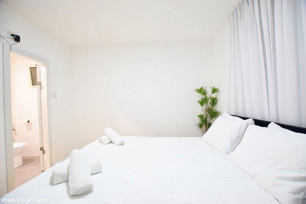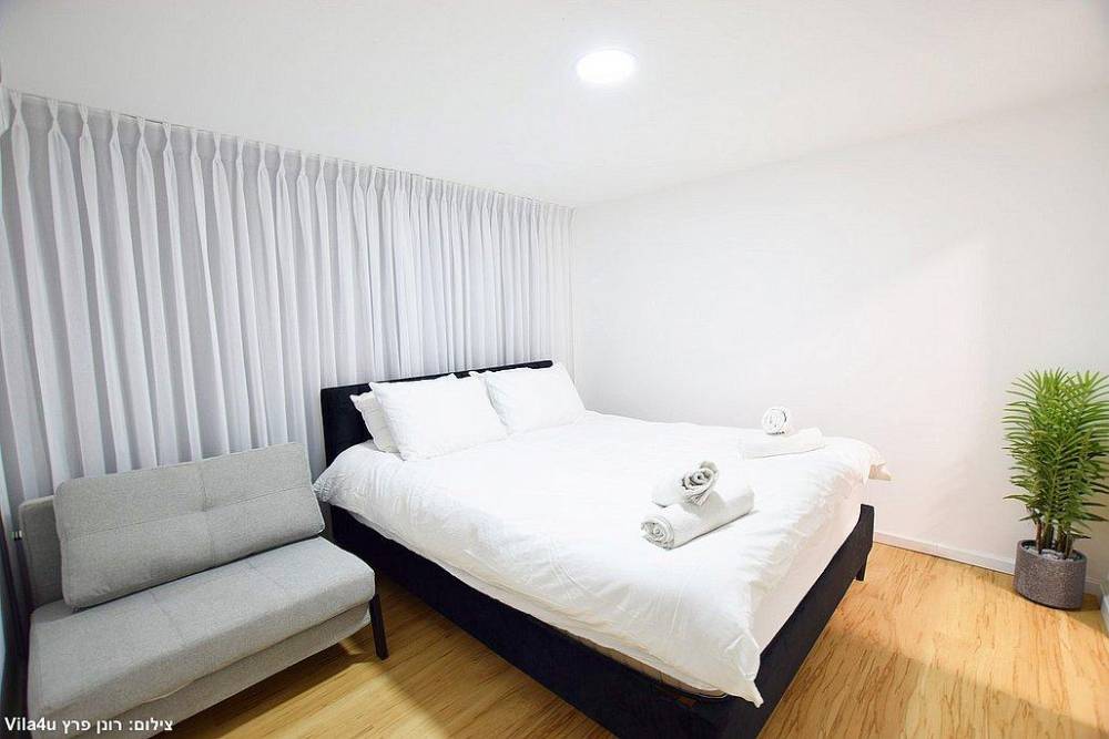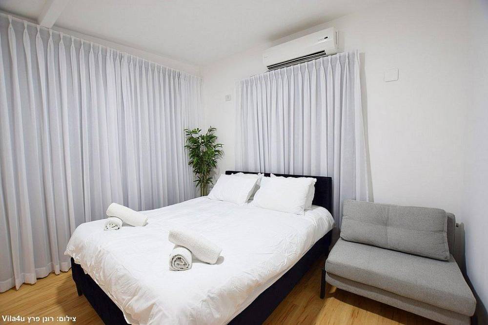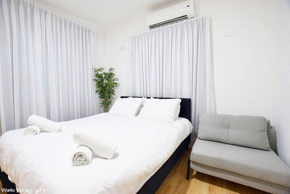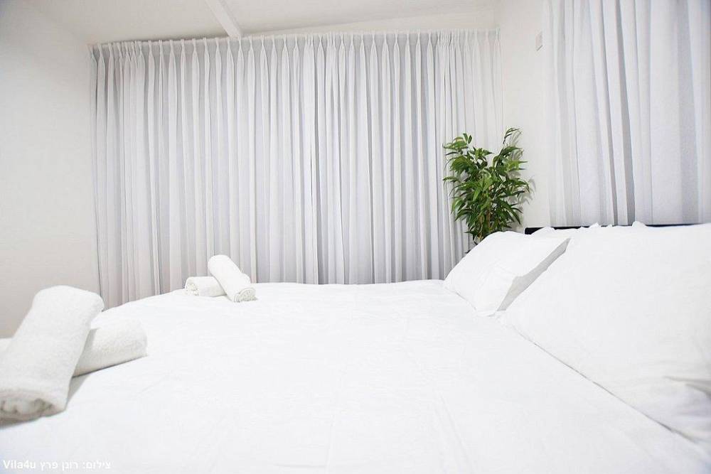 כל חדר לינה כולל מיטה זוגית, שידות אחסון, מזגן ומסך שטוח עם חיבור לערוצי YES