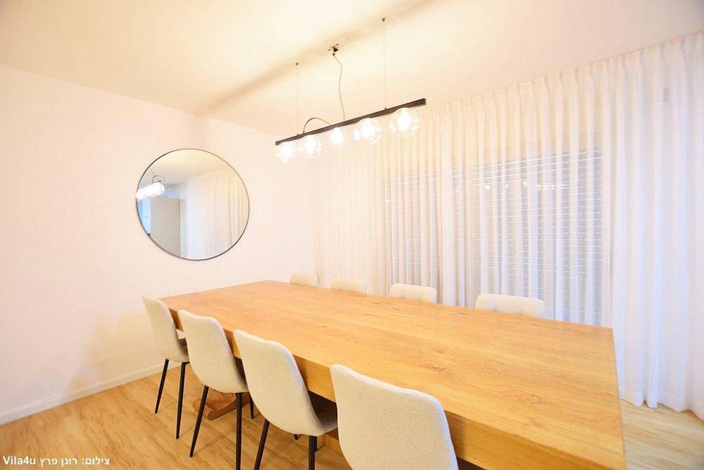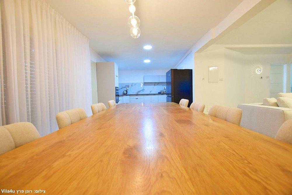 שולחן אוכל עם עשרה מקומות ישיבה (ניתן להוסיף שולחנות וכיסאות לפי הצורך)
