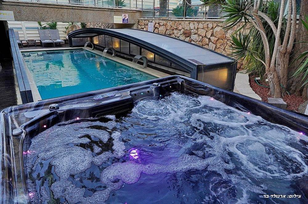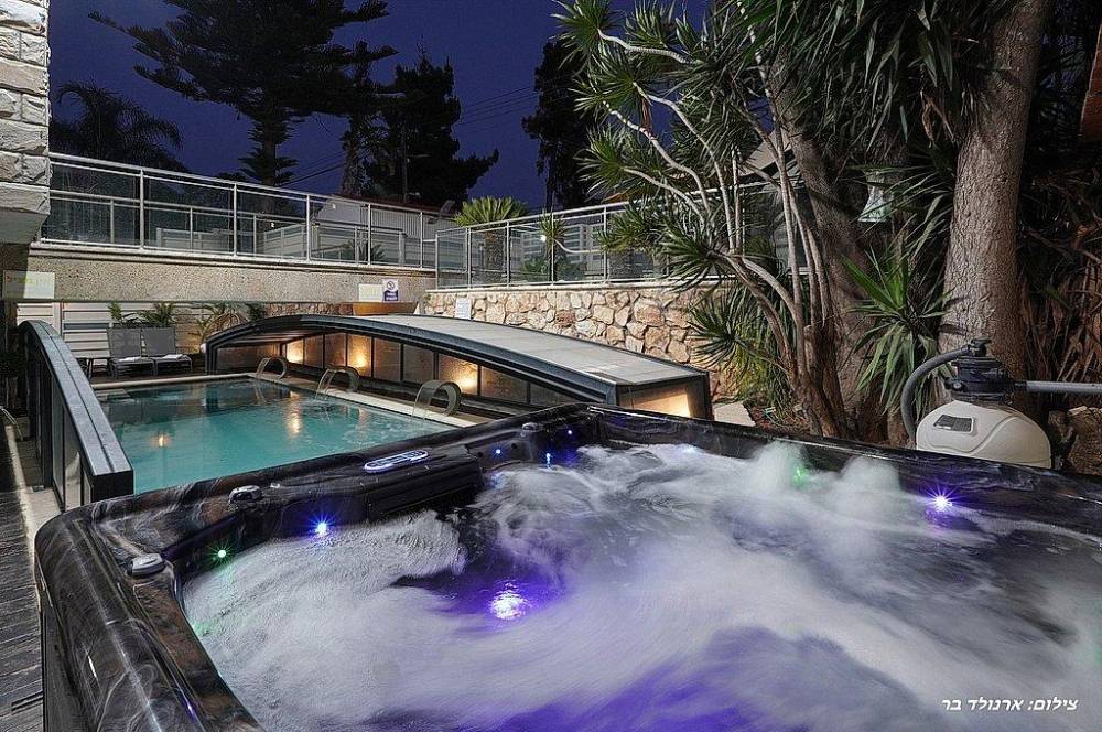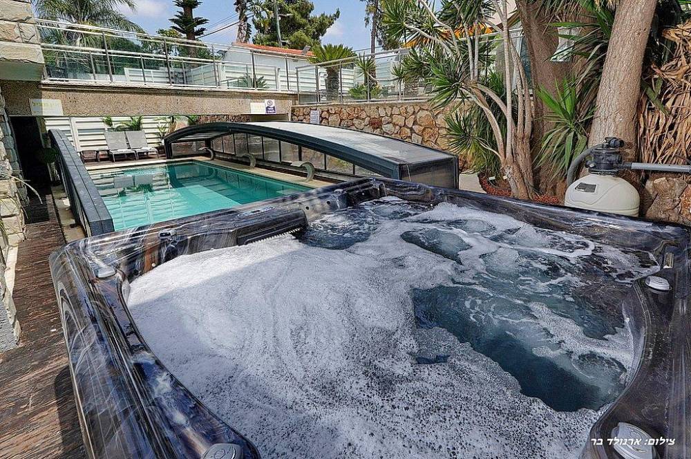 בריכת שחייה בגודל 10 על 4 מטר (מחוממת ומקורה בחורף) עם מפלי מים