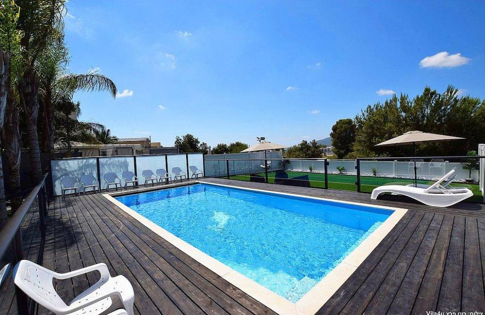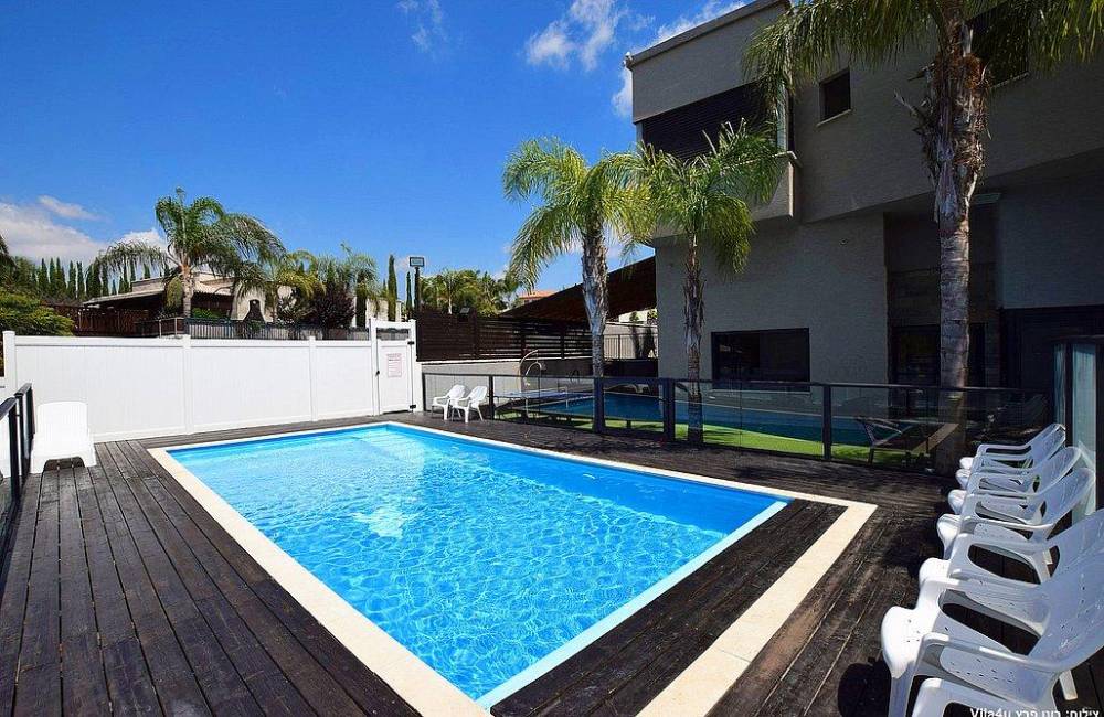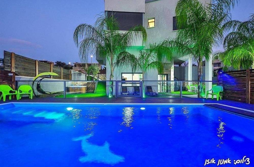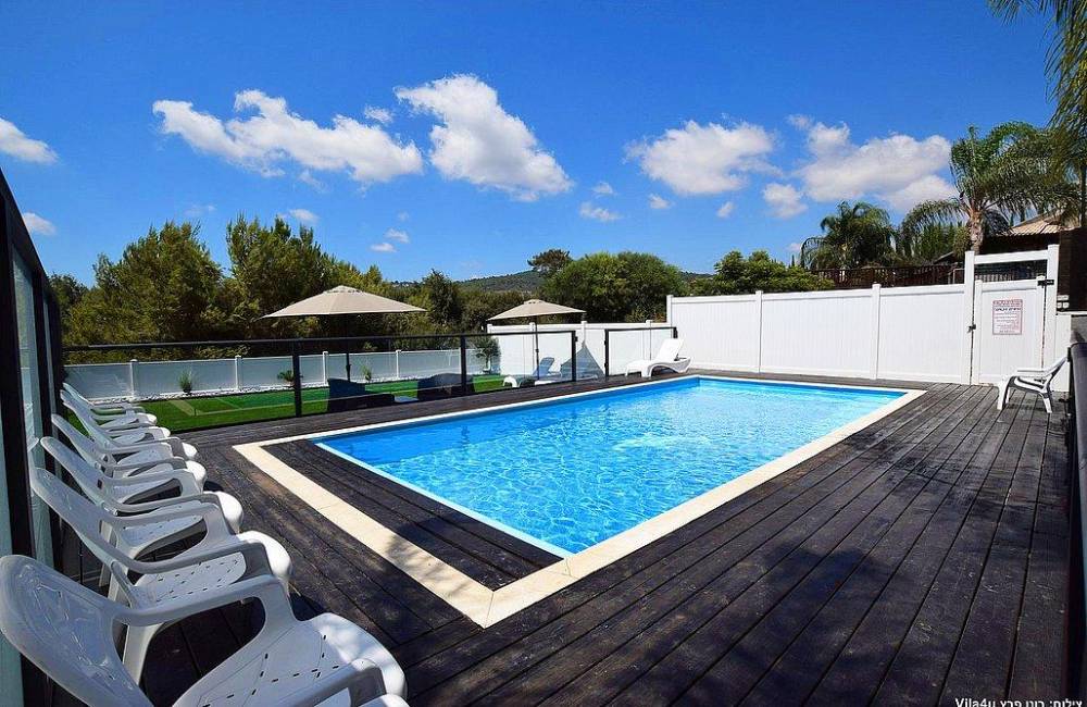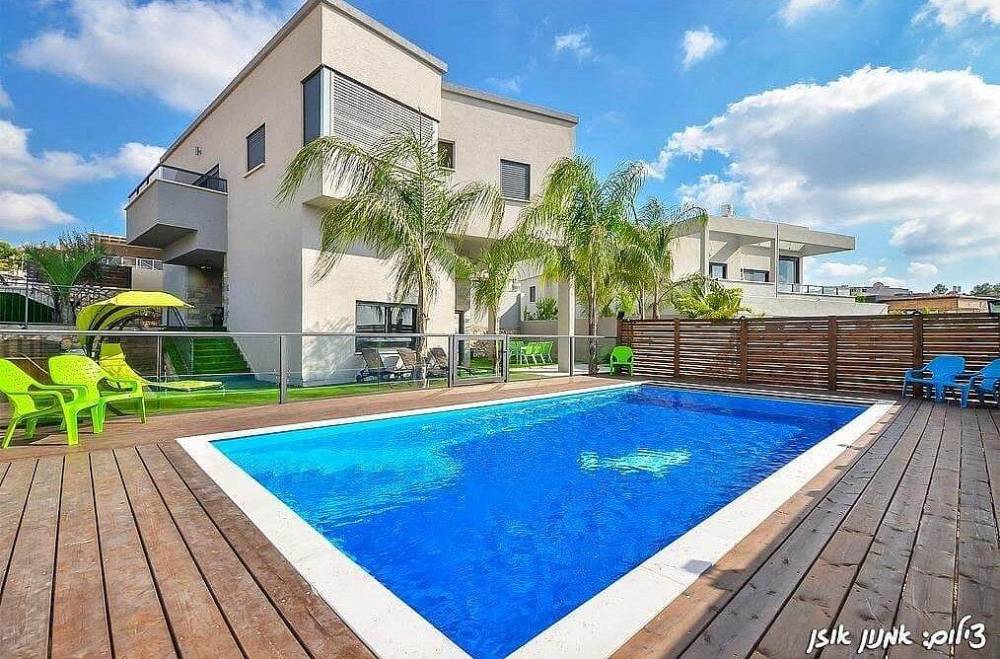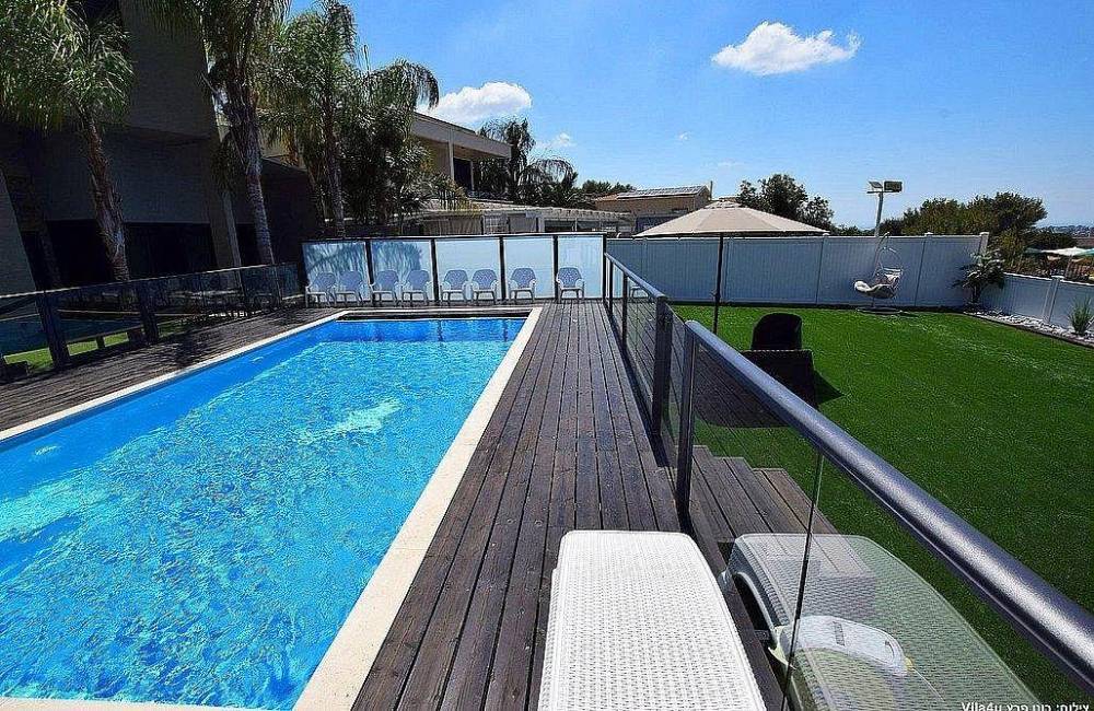 בריכת שחייה בנויה (מחוממת בחורף) בגודל 9X5 הבריכה הינה בטיחות לילדים, מוקפת שער זכוכית