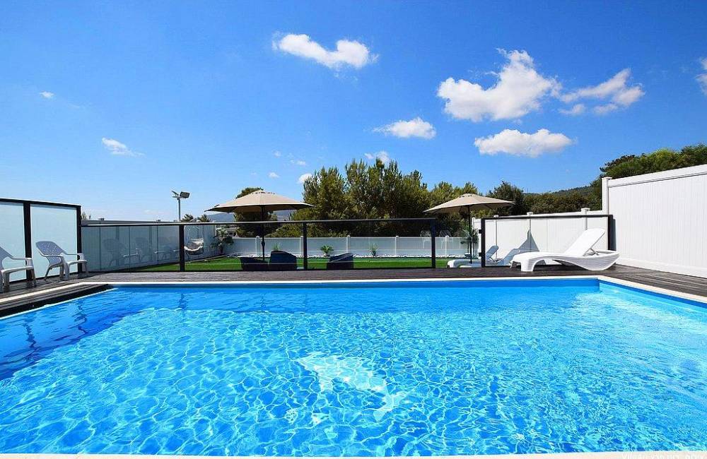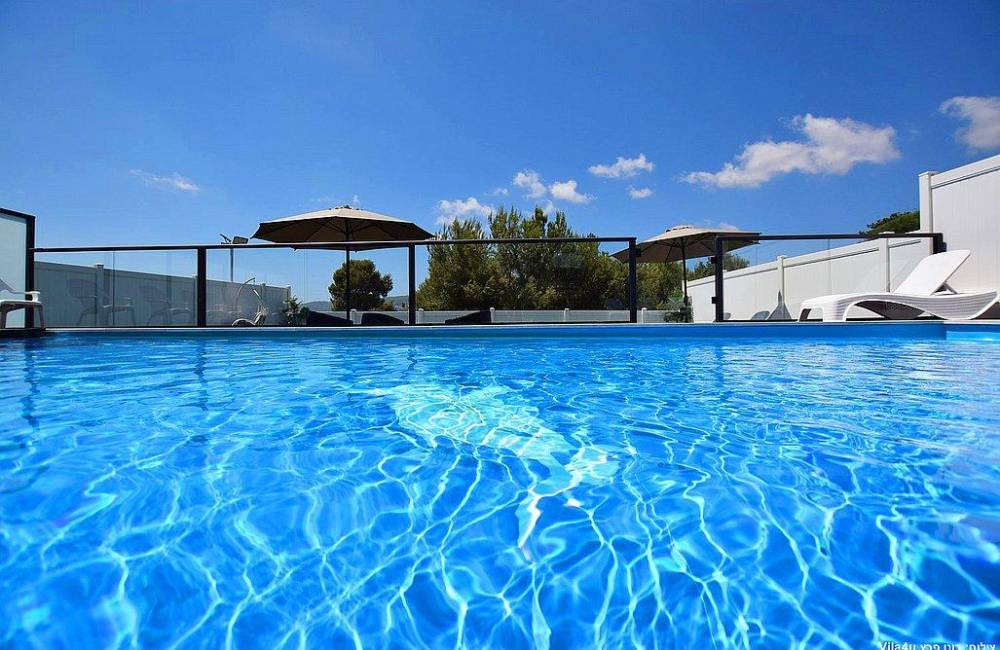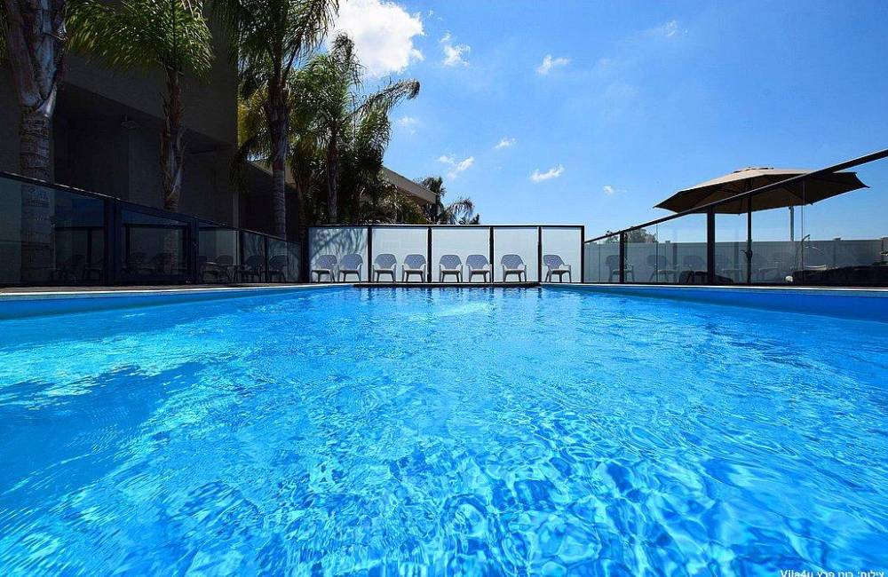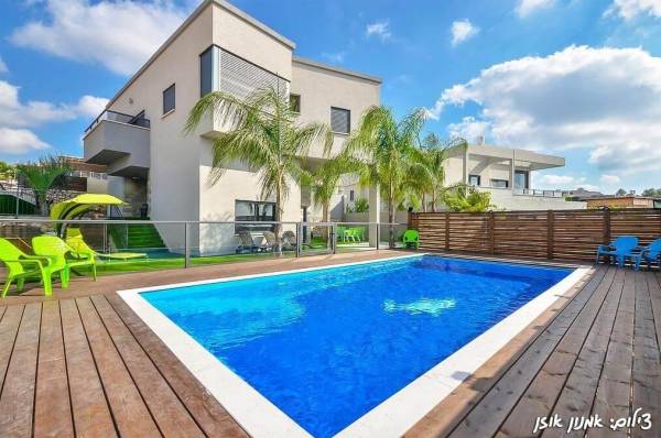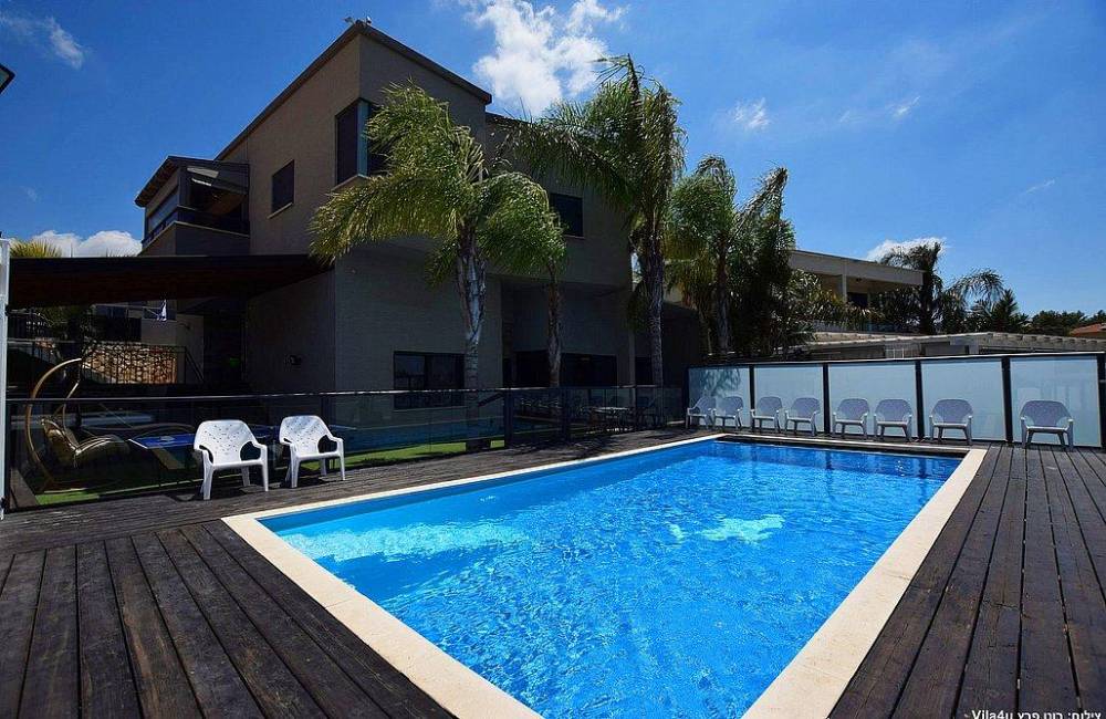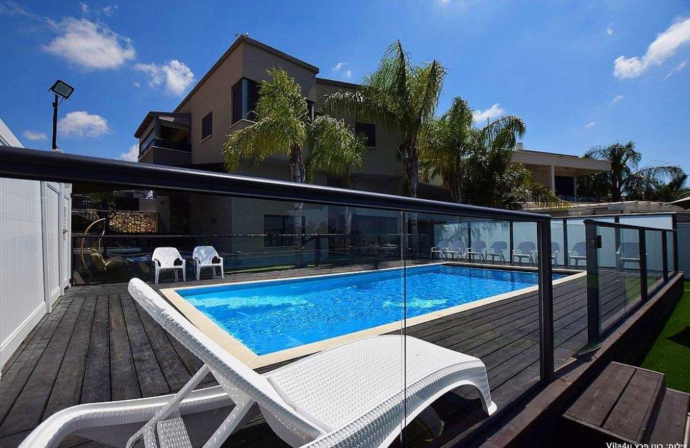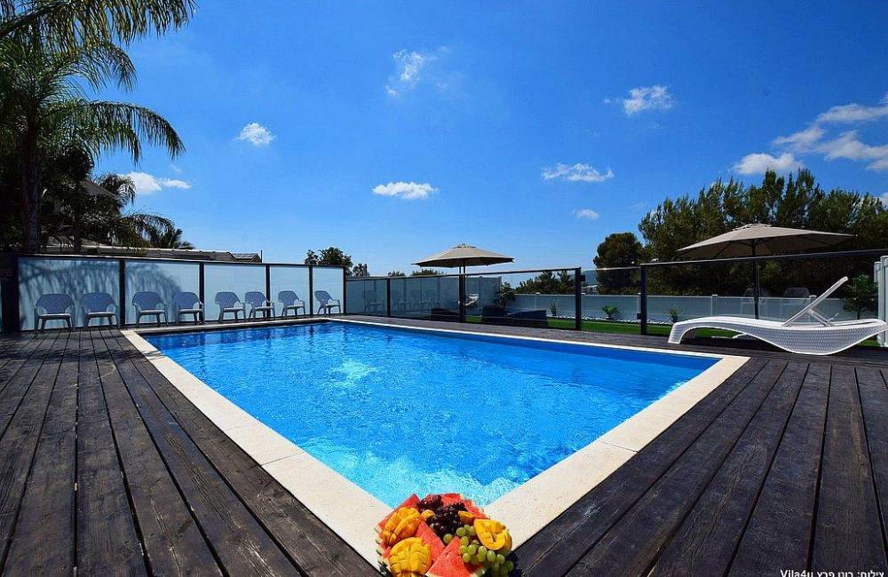 בריכת שחייה בנויה (מחוממת בחורף) בגודל 9X5 הבריכה הינה בטיחות לילדים, מוקפת שער זכוכית