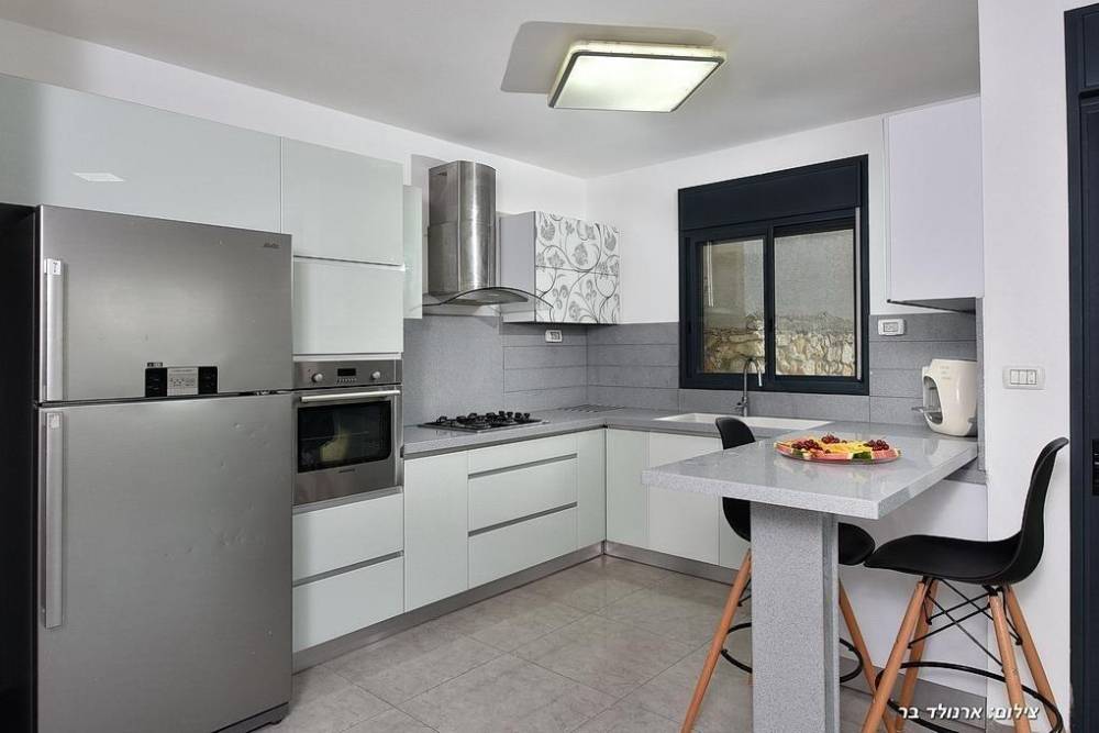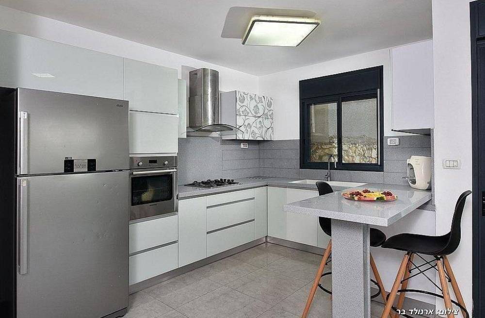 מטבח מאובזר בכל הנדרש הכולל: מקרר, מיקרוגל, תנור אפייה, כלי אוכל והגשה