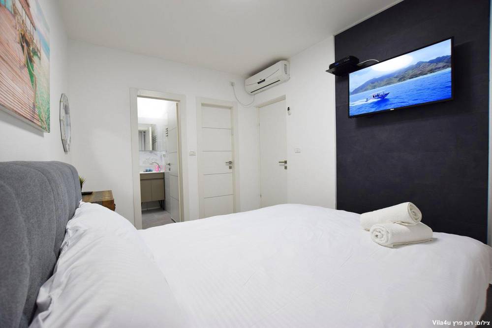 3 חדרי שינה זוגיים הכוללים – מיטה זוגית מוצעת במצעים נעימים, שידת אחסון, מיזוג אוויר, מסך LCD עם חיבור ל-HOT