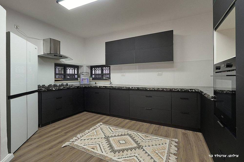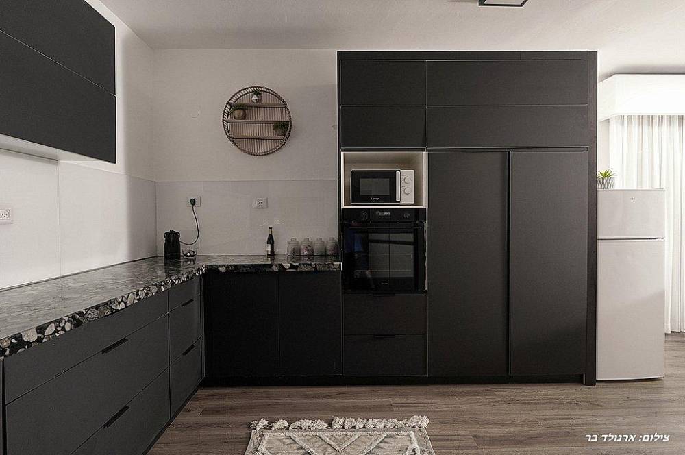 מטבח מאובזר הכולל: מקרר, מיקרוגל, תנור, קומקום חשמלי, מתקן מים , כלי אוכל והגשה, כיריים לבישול