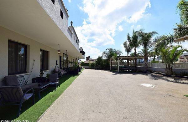 חצר מהממת עם פינת פרגולה ענקית, ערסלים מיטות שיזוף ונדנדות