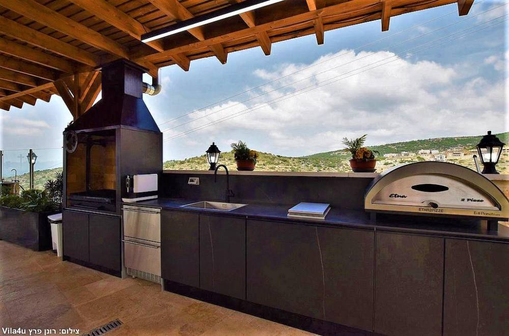 פינת מנגל עם מטבח חיצוני מחומם מקורה
