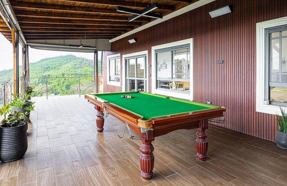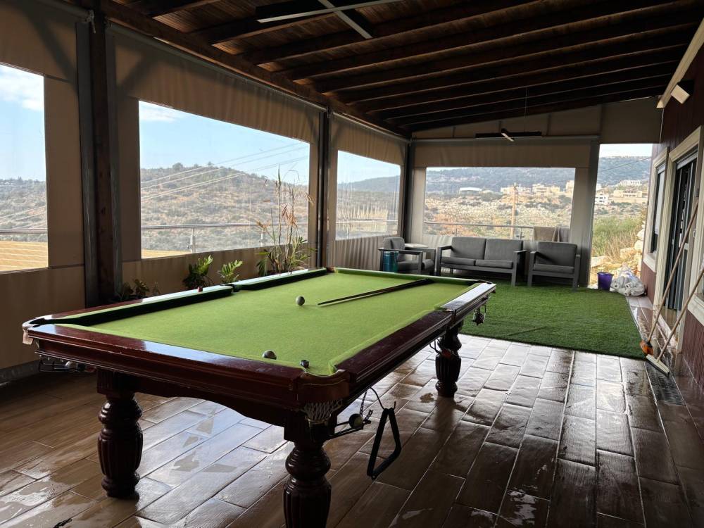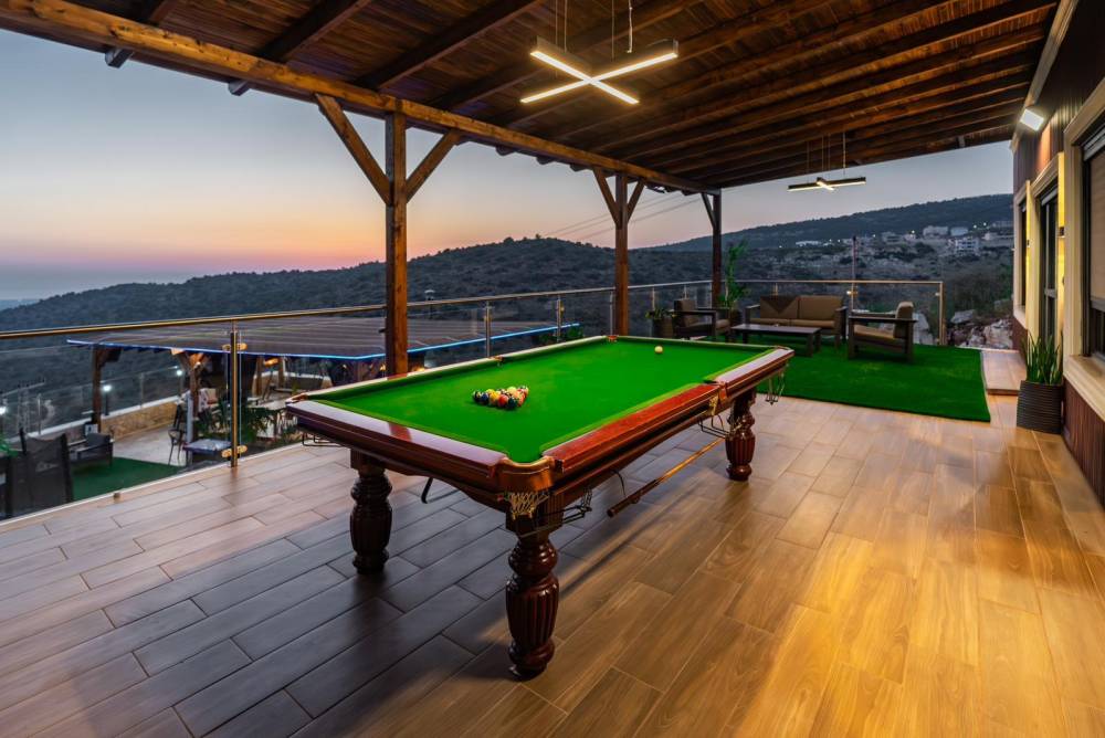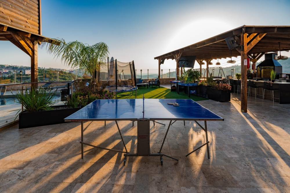 מתחם משחקים מחומם ומקורה הכולל שולחן פינג פונג, שולחן סנוקר ושולחן כדורגל