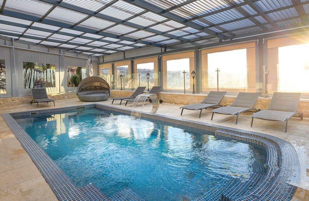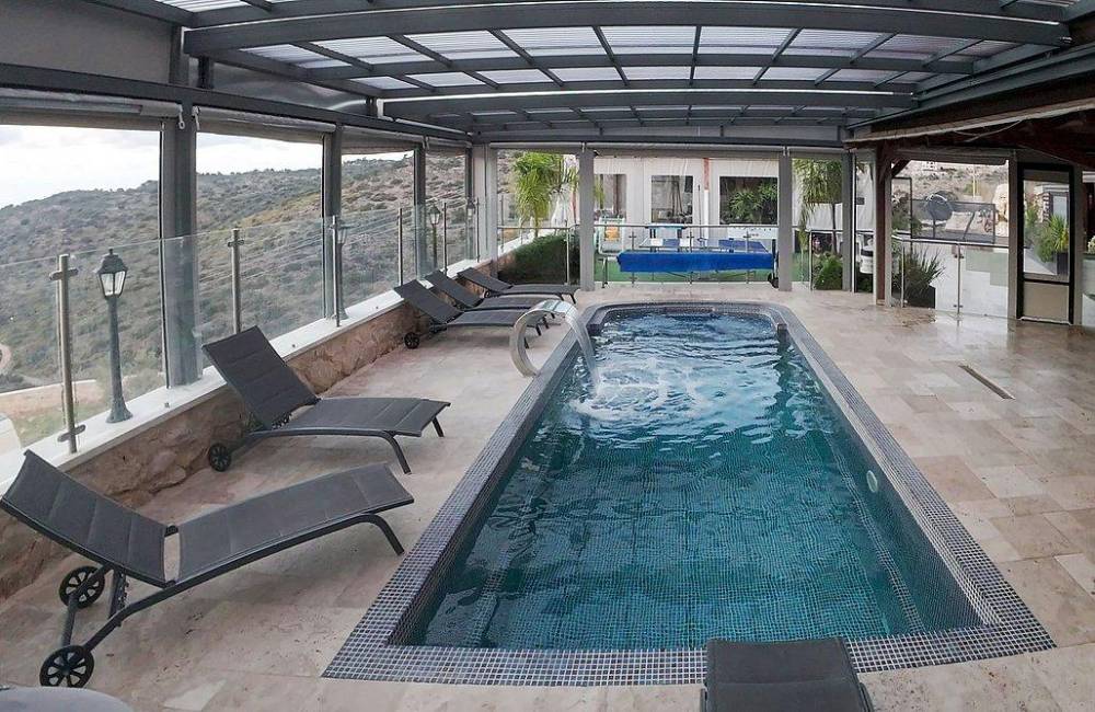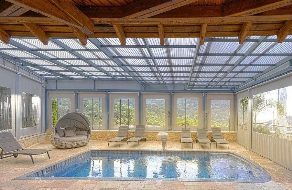 בריכת שחייה צלולה מחוממת ומקורה