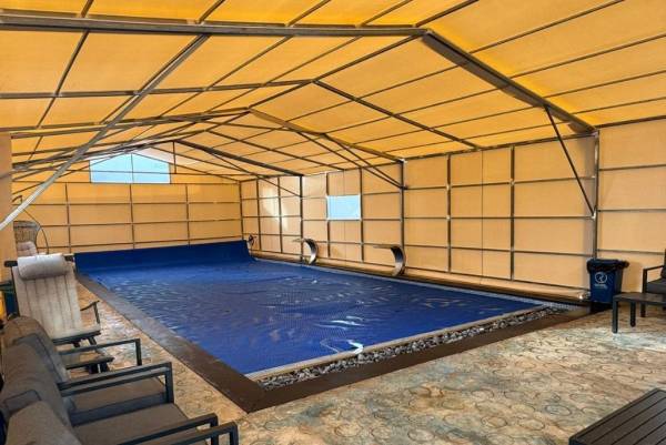בריכת שחייה גדולה, מגודרת, מחוממת ומקורה (בחורף)