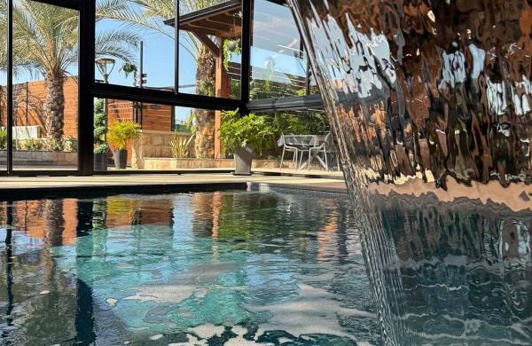 בריכה מחוממת ומקורה ( מגודרת לבטיחות הילדים )
