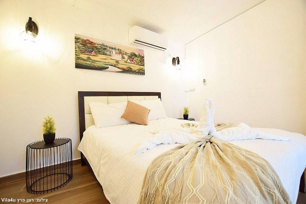 4 חדרי שינה ו3 חדרי רחצה, כל חדר שינה עם מיטה זוגית, מיזוג אוויר ושידות לאחסון