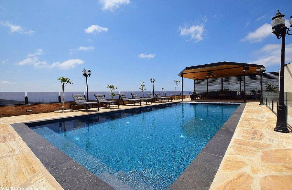 בריכה ענקית מחוממת בגודל 12X5 עם מפל מים