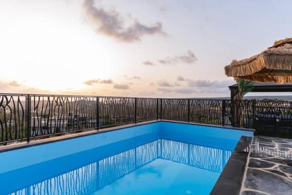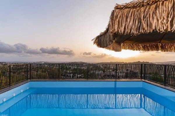בריכה פרטית ומגודרת מול נוף ירוק ונוף לים