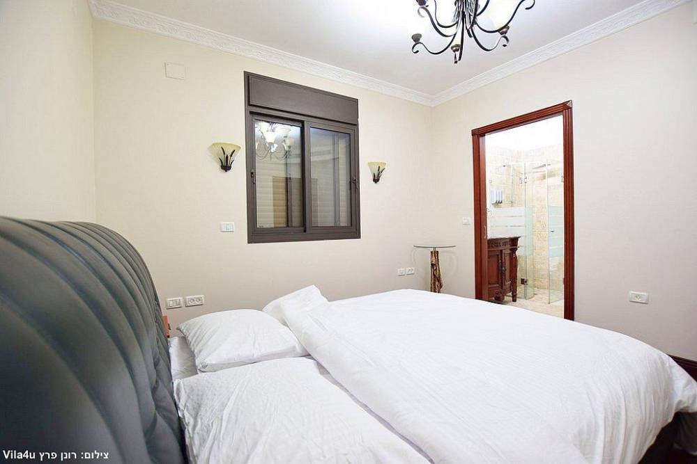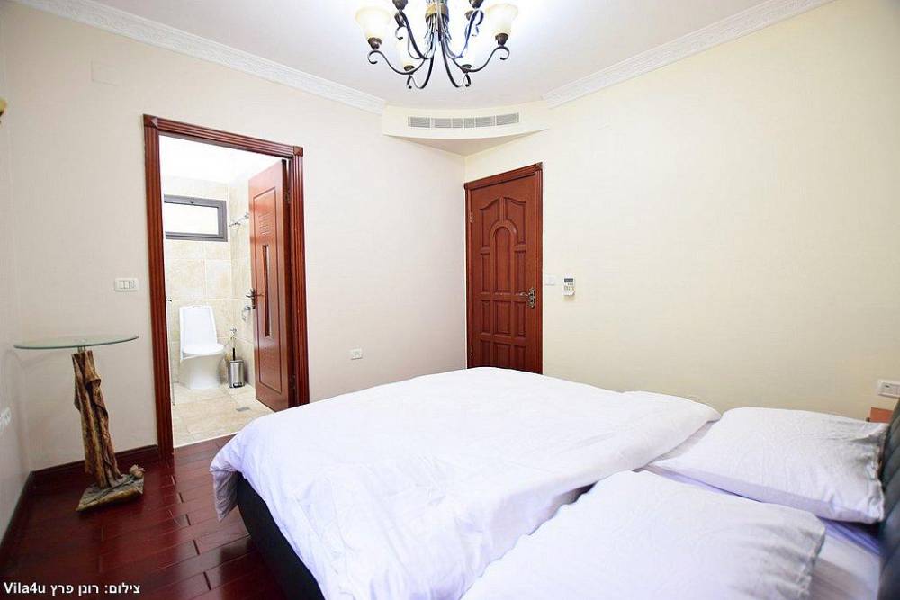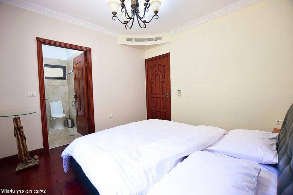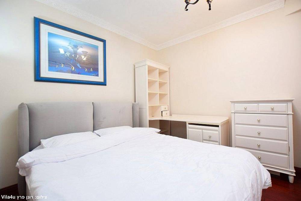 5 חדרי שינה - ובהם מיטה זוגית רחבה, מזגן, מסך טלוויזיה ושידות אחסון.