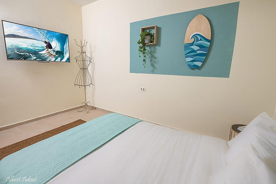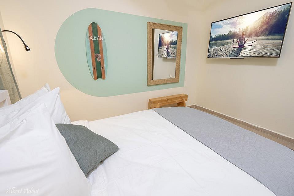 מיטה זוגית, מיזוג אוויר, שידה, מסך צפייה