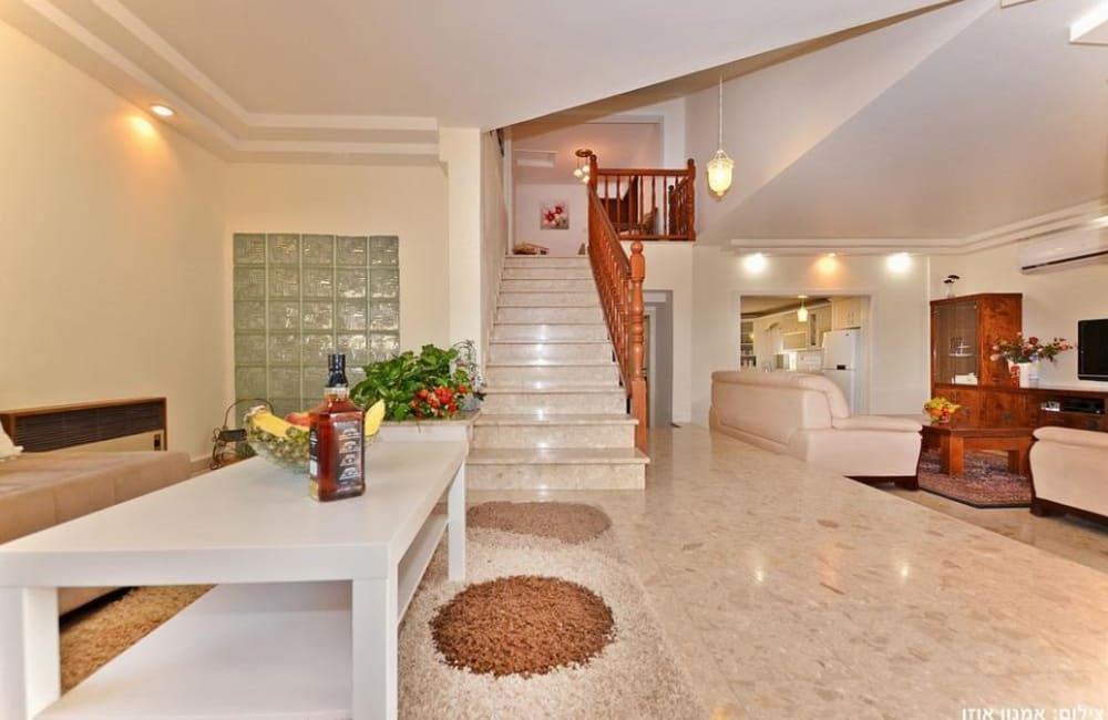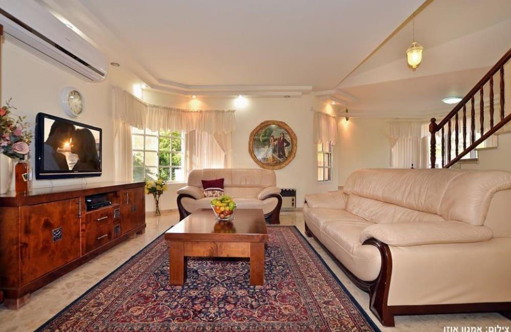 סלון גדול ומפואר בעיצוב ייחודי עם טלוויזיית lcd 70 אינץ'