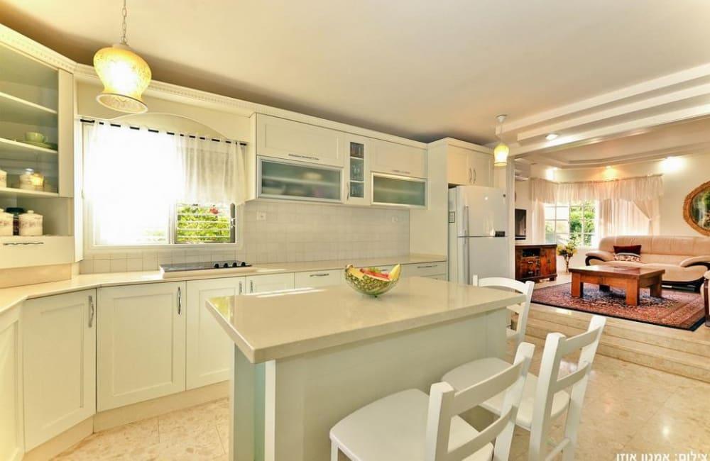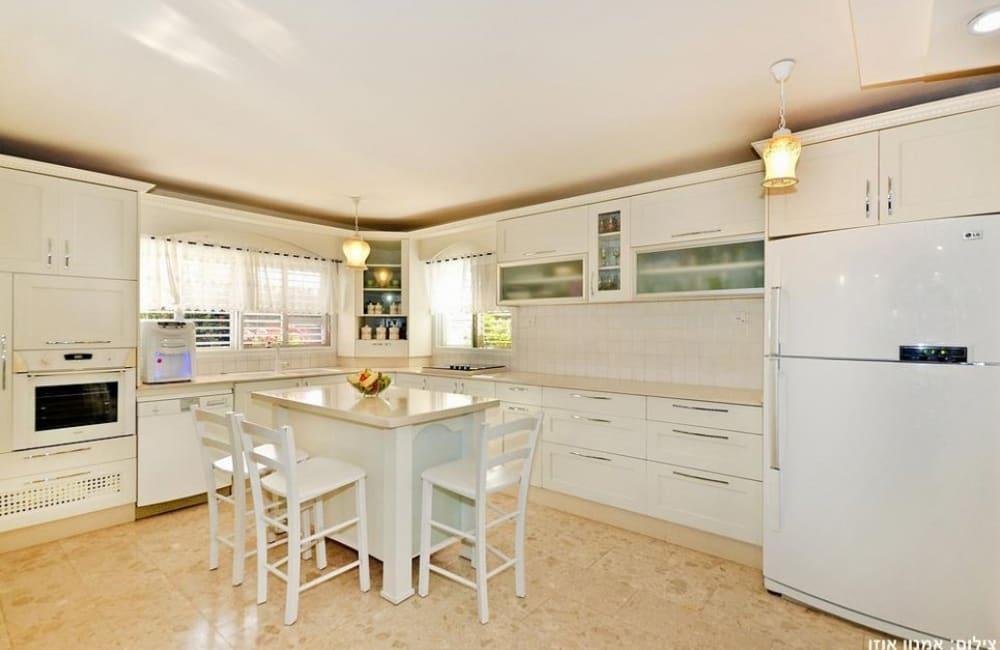 מטבח מאובזר הכולל: תנור, תמי 4, מקפיא, מקרר, מדיח כלים, כיריים גז, טוסטר אובן, מיקרוגל, טוסטר, כלי הגשה ובישול