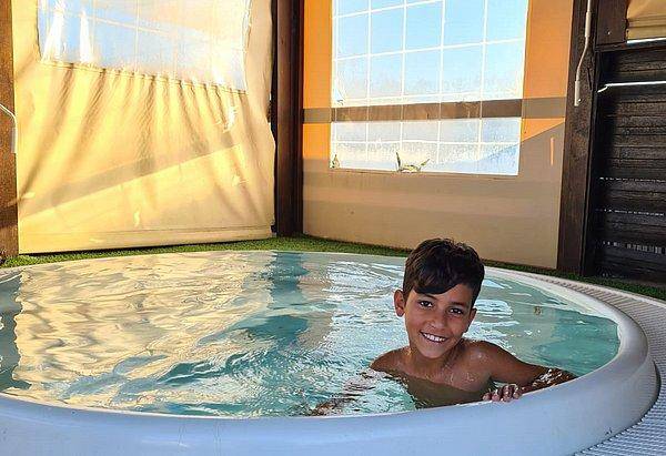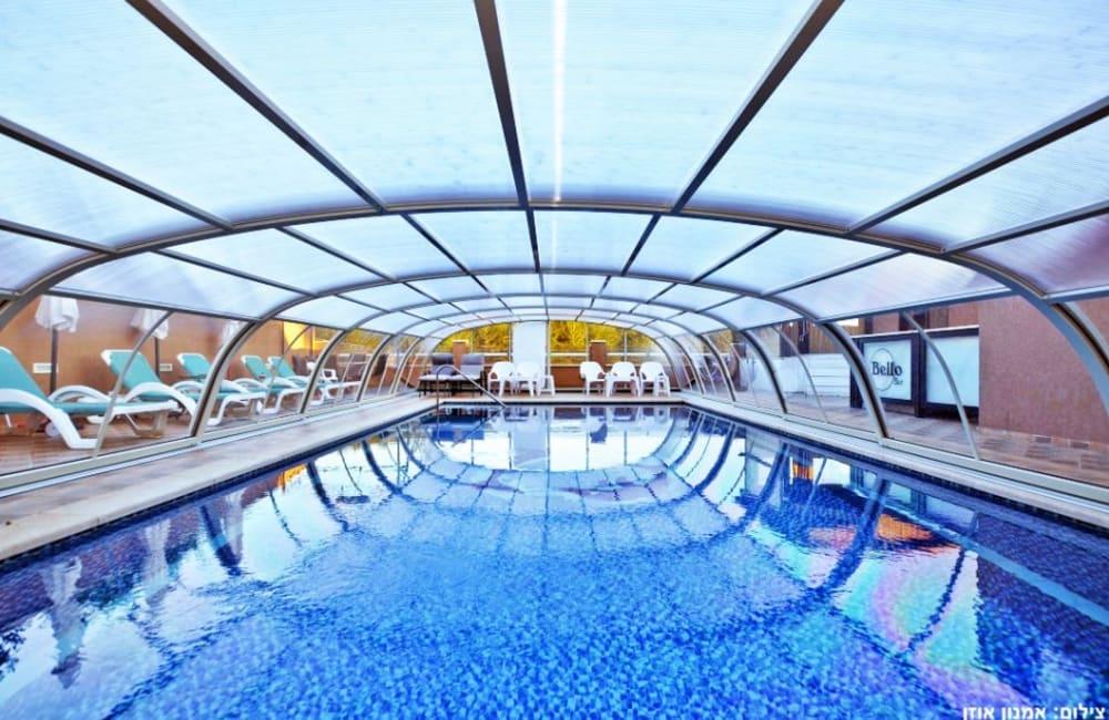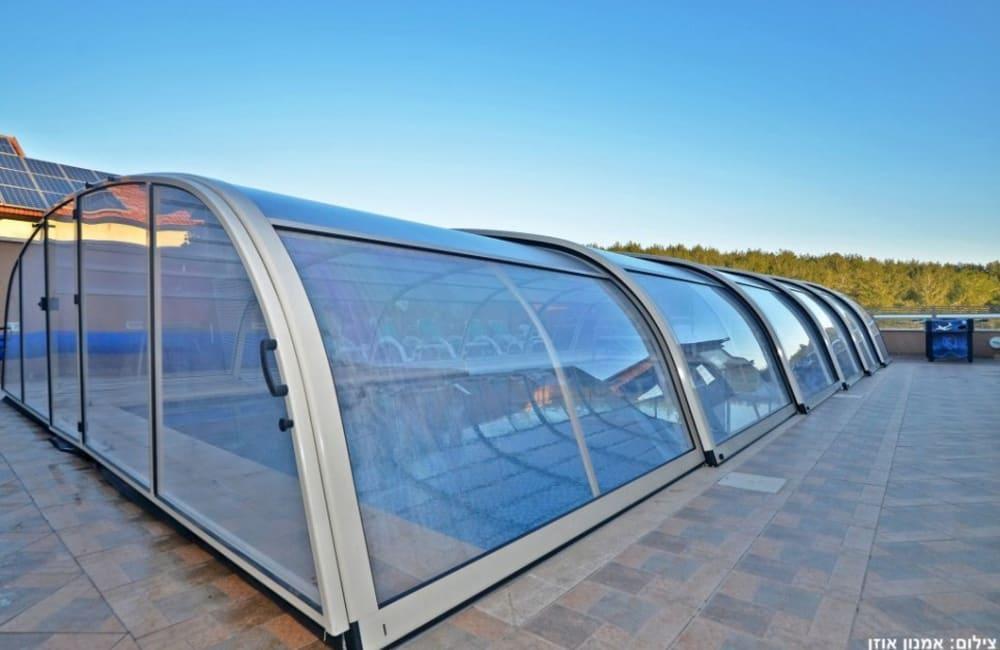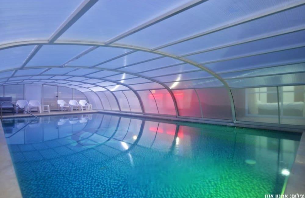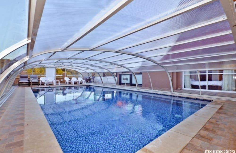 בריכת שחייה מחוממת ומקורה (ניתנת לפתיחה) בגודל 10X5 מטר ועומק מקסימלי 1.4 מטר