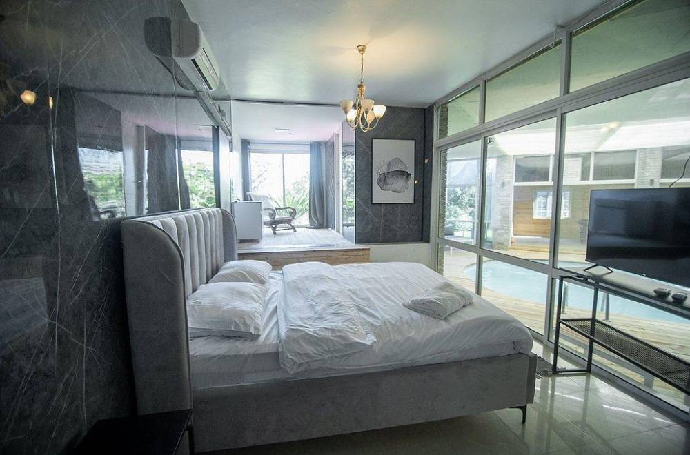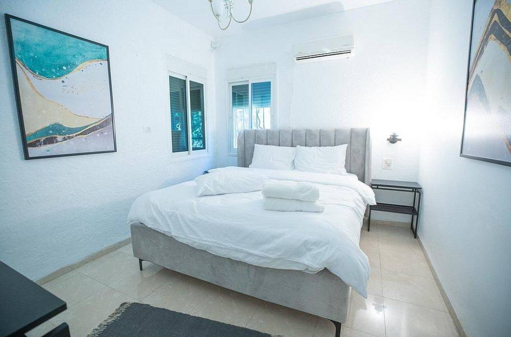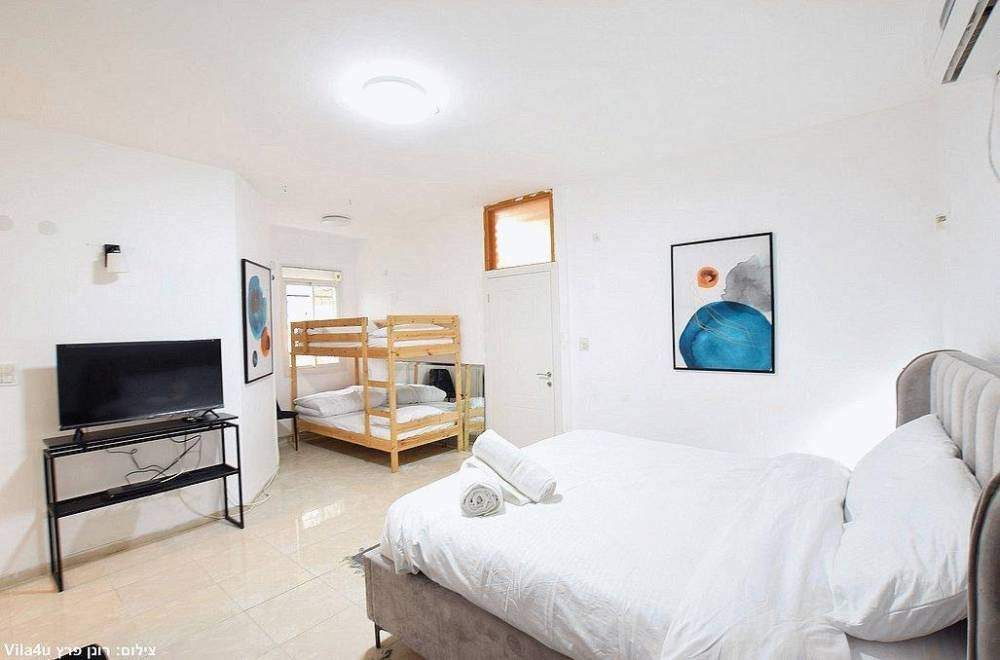 8 חדרי שינה - ובהם מיטה זוגית רחבה, מזגן, מסך טלוויזיה ושידות אחסון ובאחד מהם חדר רחצה פרטי.