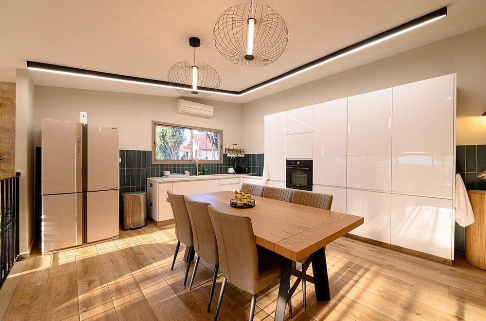 מטבח מאובזר הכולל - מקרר, מיקרוגל, כיריים חשמליות, מכונת קפה, מתקן מים, תנור אפייה, כלי אוכל והגשה. בנוסף לציבור הדתי קיים פלטה ומיחם