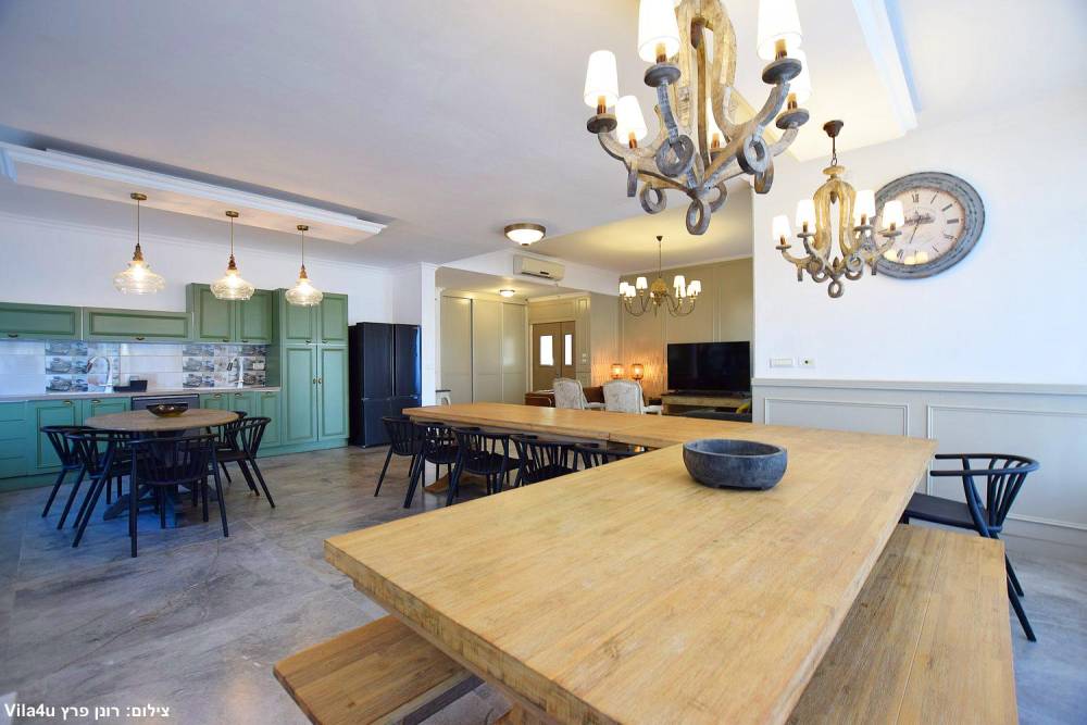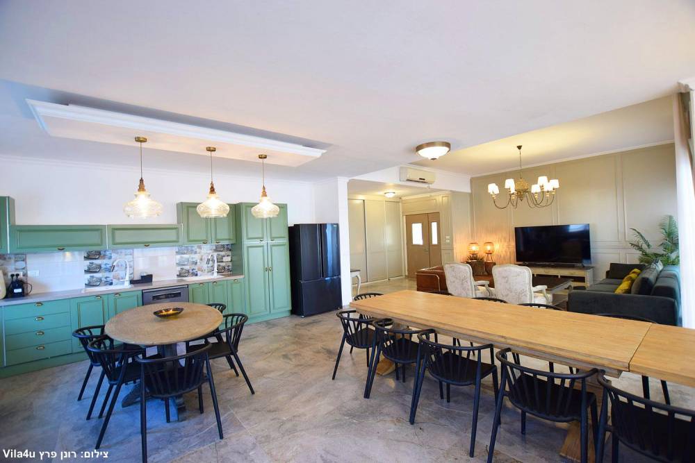 פינת אוכל צמודה למטבח ופינת אוכל גדולה נוספת.