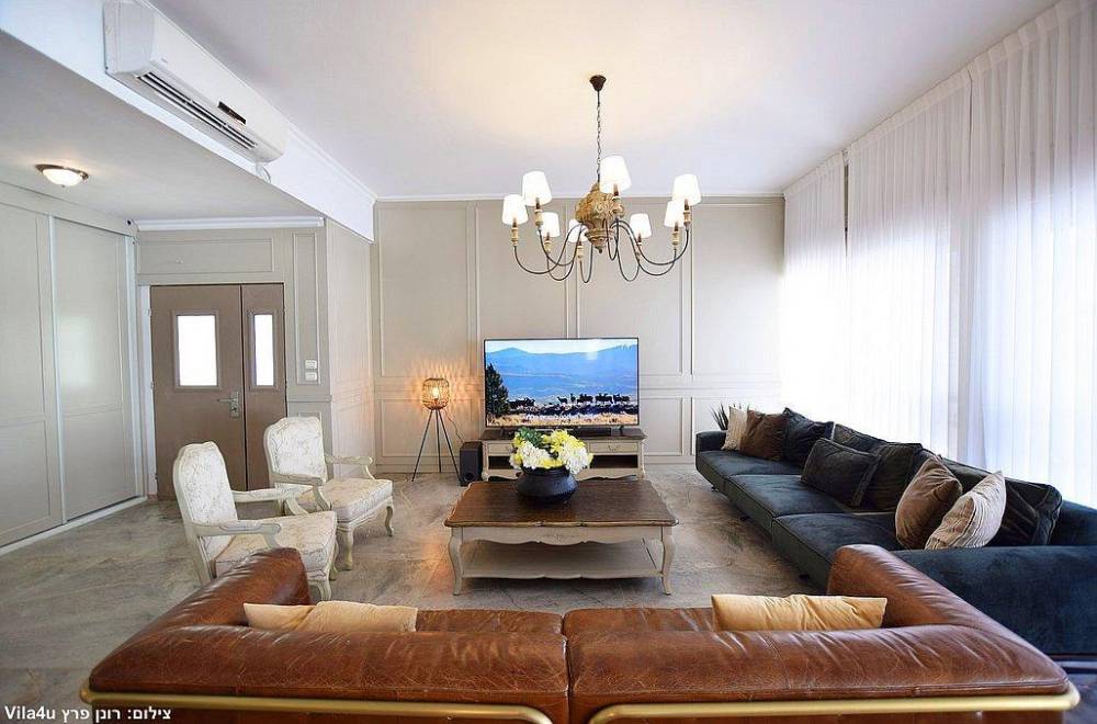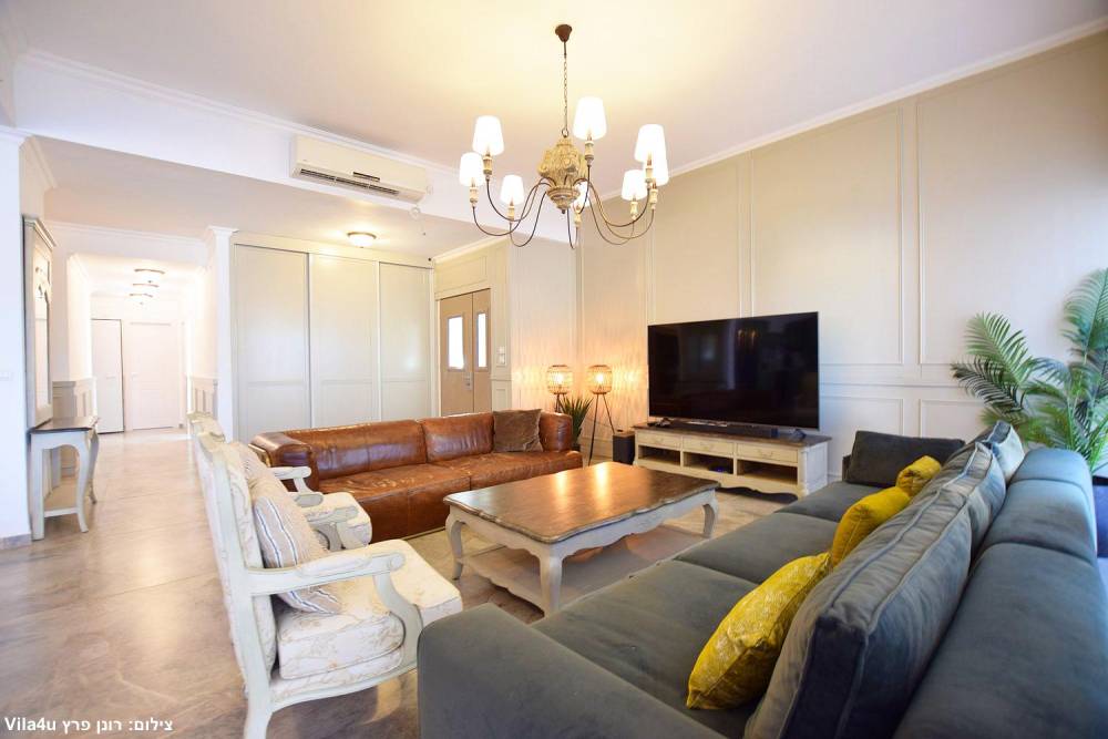 סלון מרווח עם מערכות ישיבה וטלוויזיה עם חיבור לערוצים.