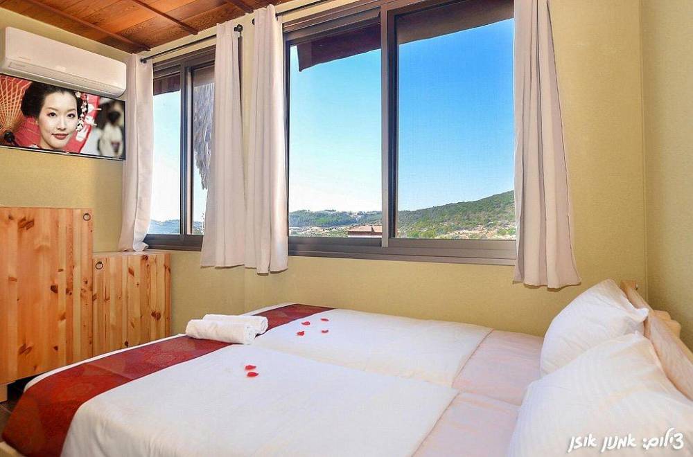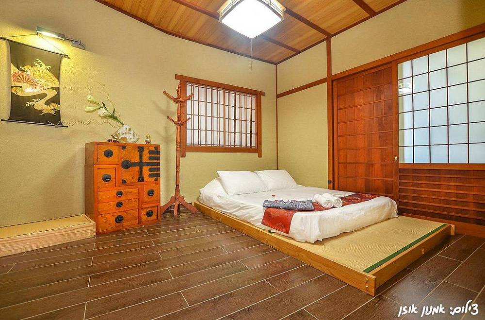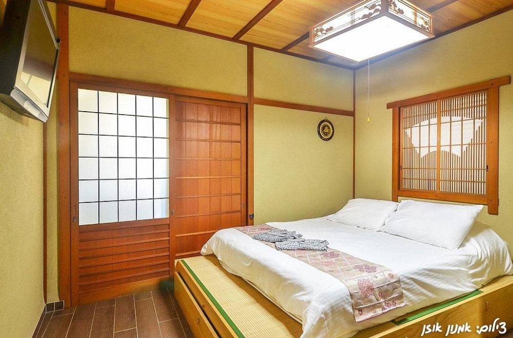• חדר מס' 2 – מיטה זוגית יפנית מודרנית, מזגן, מסך LCD