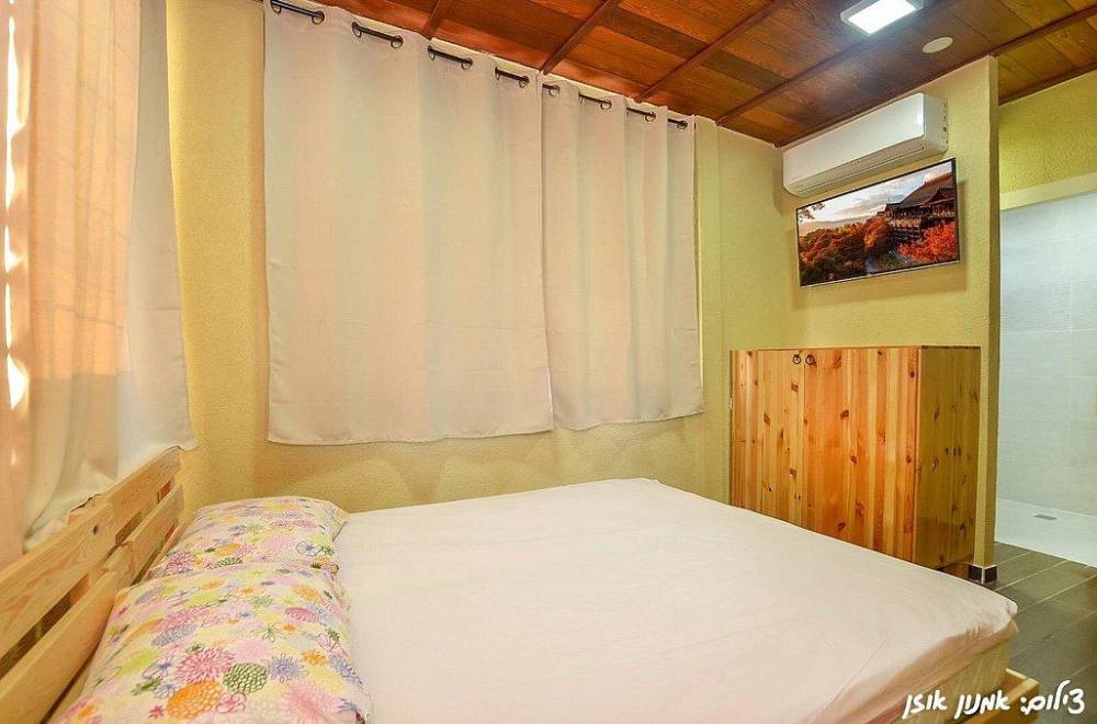 • חדר מס' 1 – מיטה זוגית נמוכה יפנית, מזגן, מסך LCD