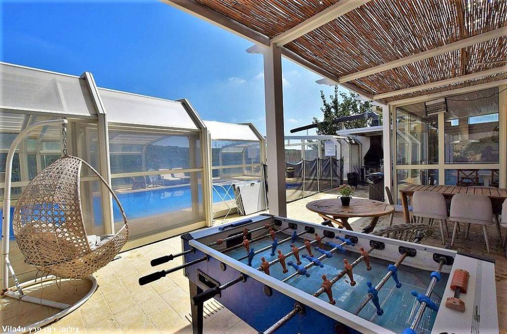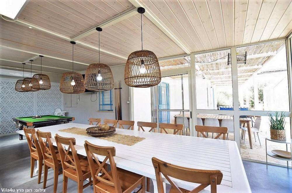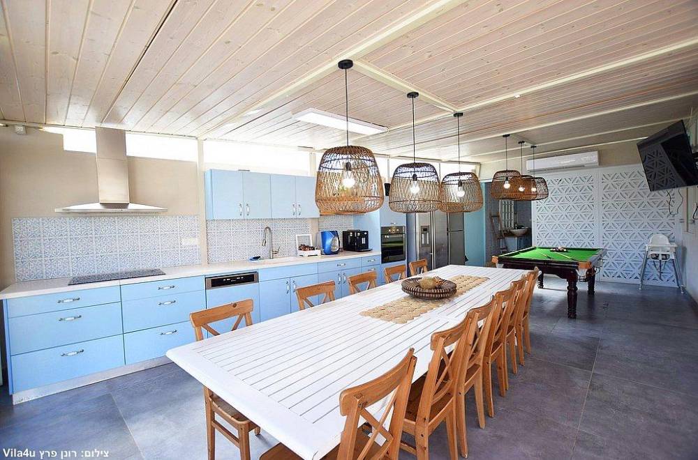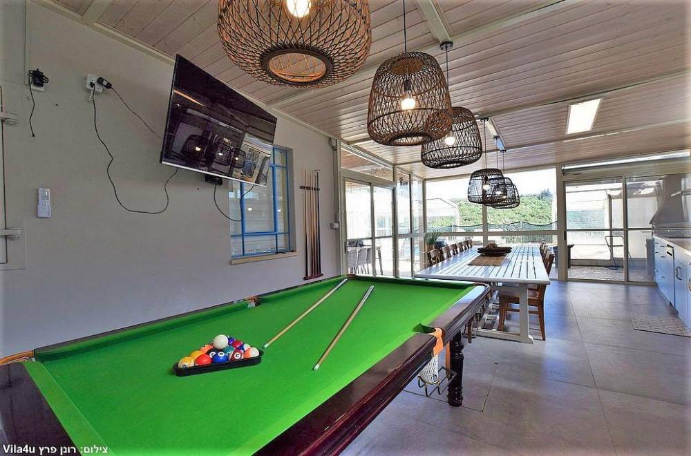 הוילה מושלמת לנופש משפחות מאחר והיא מרווחת, כוללת חדר אוכל משותף, גן משחקים לילדים, בריכה מגודרת לבטיחות, 8 חדרי שינה ומתאימה ללינה עד 35 איש ועוד.