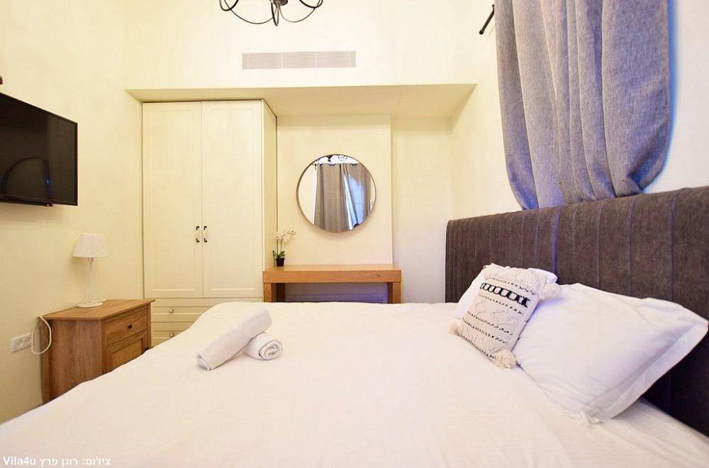 - קומה 3 - חדר שינה זוגי עם חדר רחצה פרטי, סלון מרווח הכולל ספה נפתחת היכול לשמש לחלל נוסף ללינה , מטבחון עם מקרר וכיור, יציאה למרפסת עם פינות ישיבה ונוף.