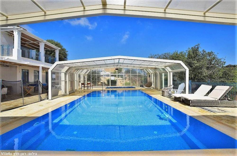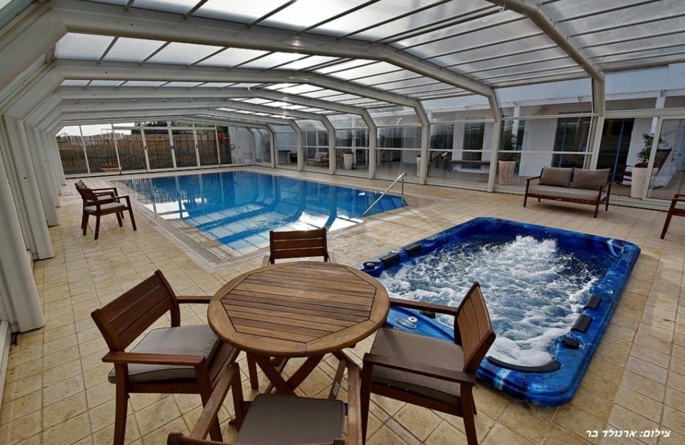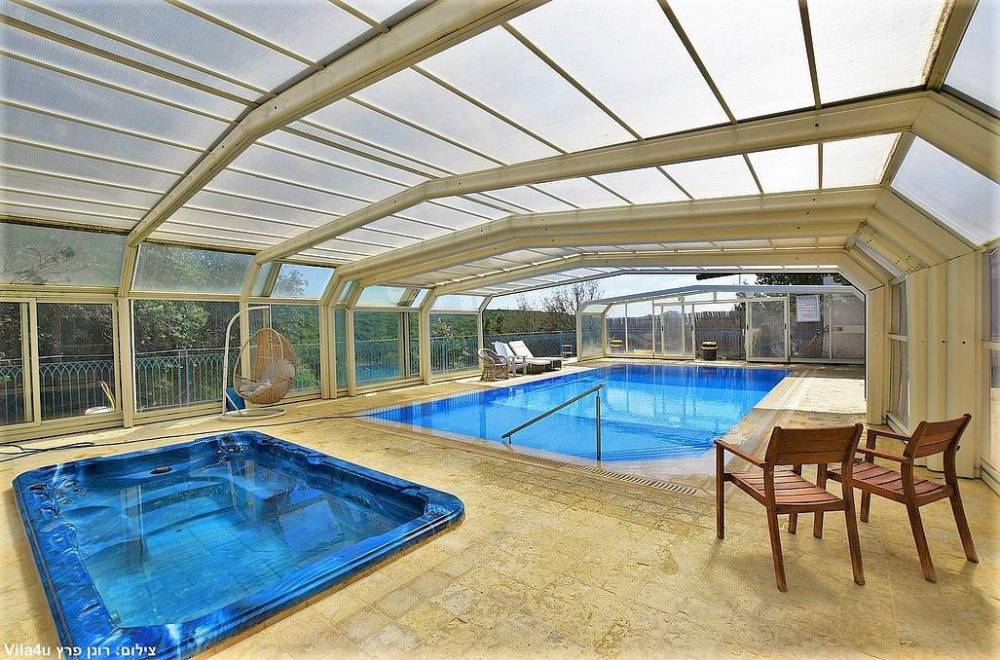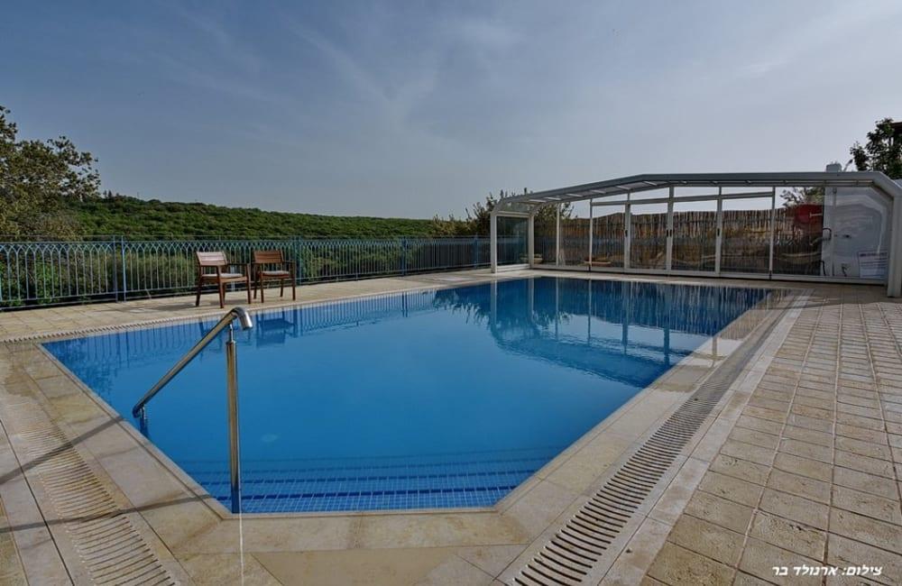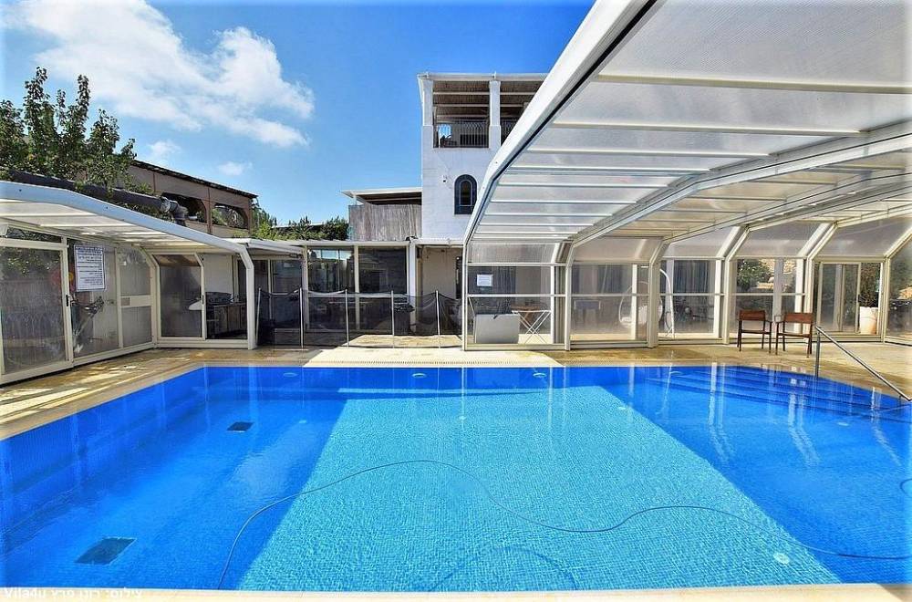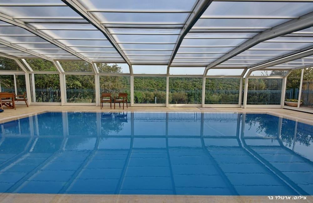 - בריכת שחייה מגודרת, מחוממת (34 מעלות) ומקורה (עם קירוי נפתח) בגודל 10X5.5 מטר.