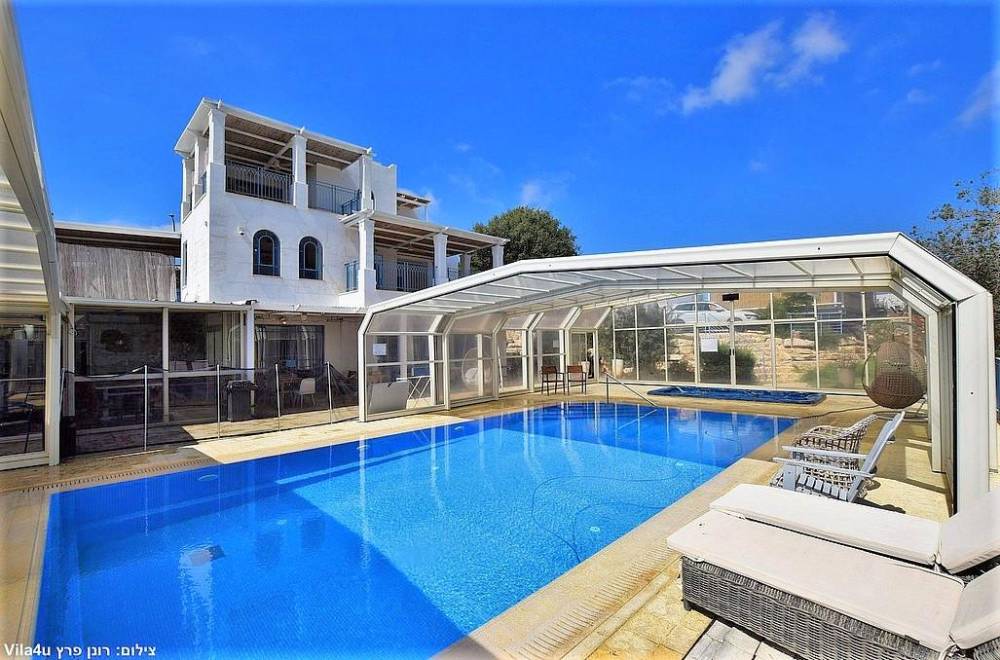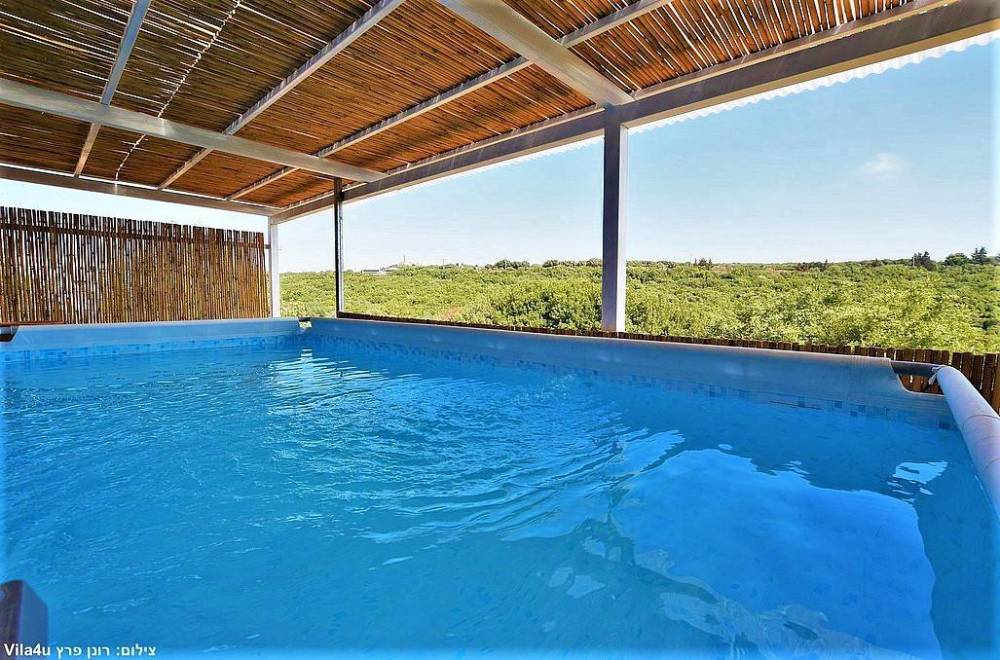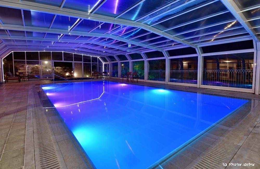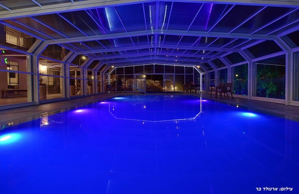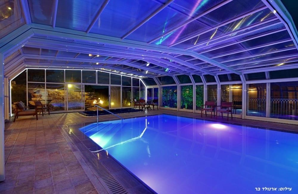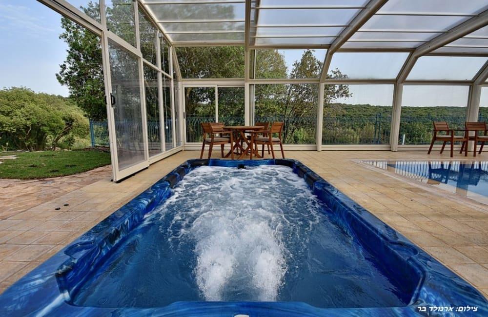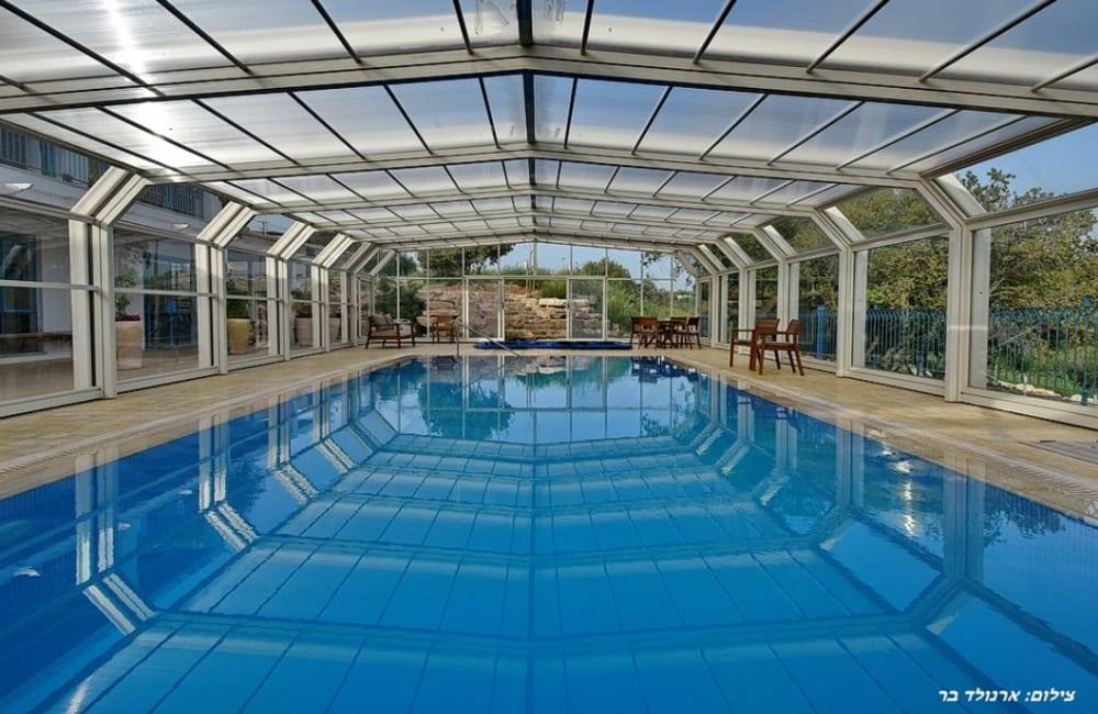 - בריכת שחייה מגודרת, מחוממת (34 מעלות) ומקורה (עם קירוי נפתח) בגודל 10X5.5 מטר.
