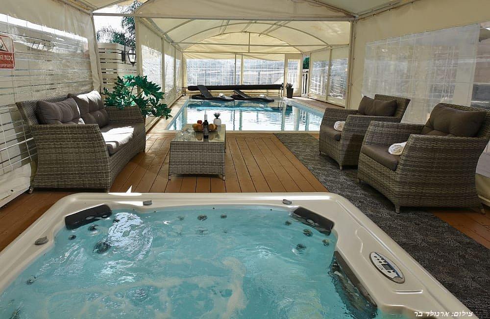 בריכת שחייה מגודרת בגדול 8.5×4 (מחוממת מקורה בחורף)