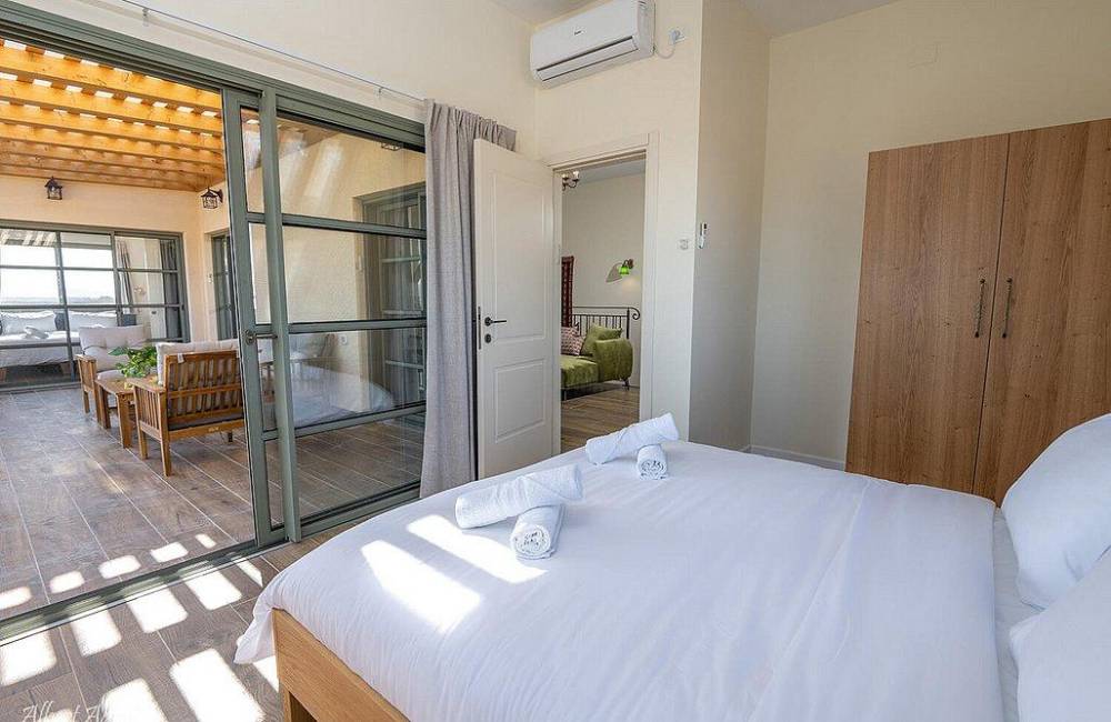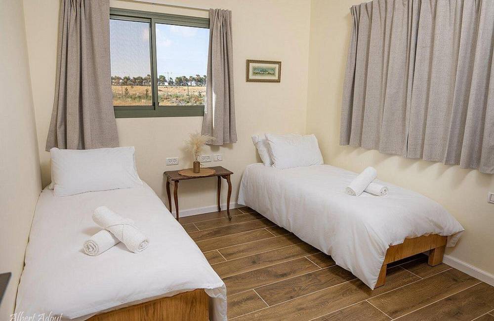 בכל החדרים מיטות יהודיות, שידות אחסון, ארון ומיזוג אוויר 2 חדרי שינה הכוללים מיטה זוגית, מיטת יחיד ולול תינוק 4 חדרי שינה הכוללים מיטה זוגית, מיטת יחיד, מזרן יחיד ומרפסת נוף 2 חדרי שינה הכוללים מיטת יחיד ומזרן יחיד